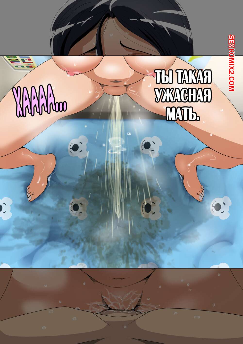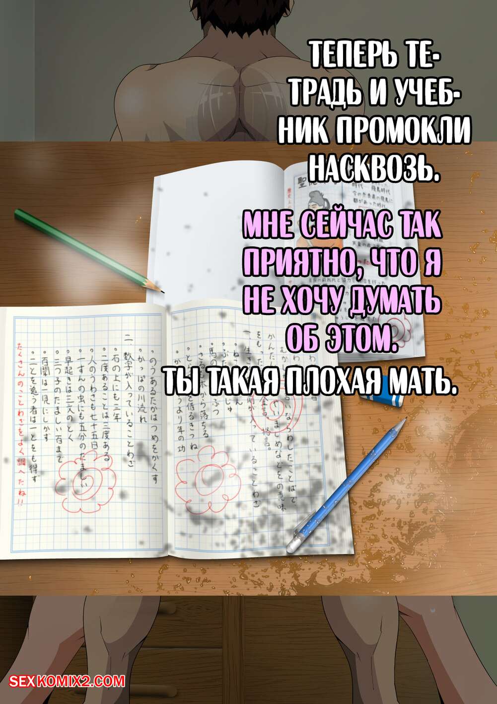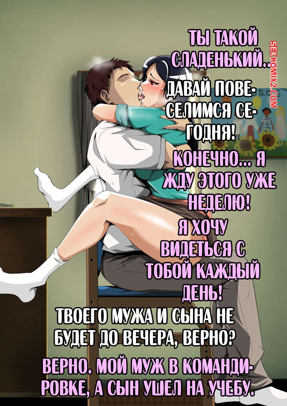 Порно комикс Что делает моя мама в комнате с репетитором. Niwatori Sennin Сисястая брюнетка милфа осталась наедине в комнате с репетитором своего сына. Красотка разделась и отсосала большой хуй парня, после чего дала ему выебать свою пизденку.