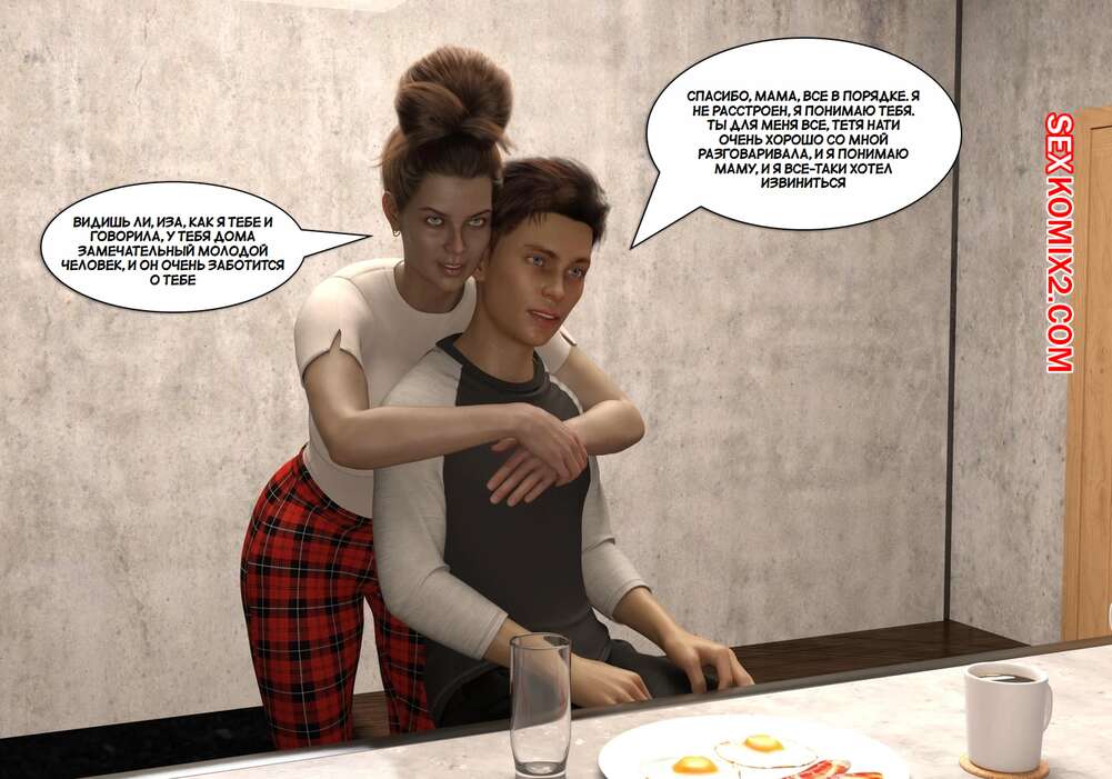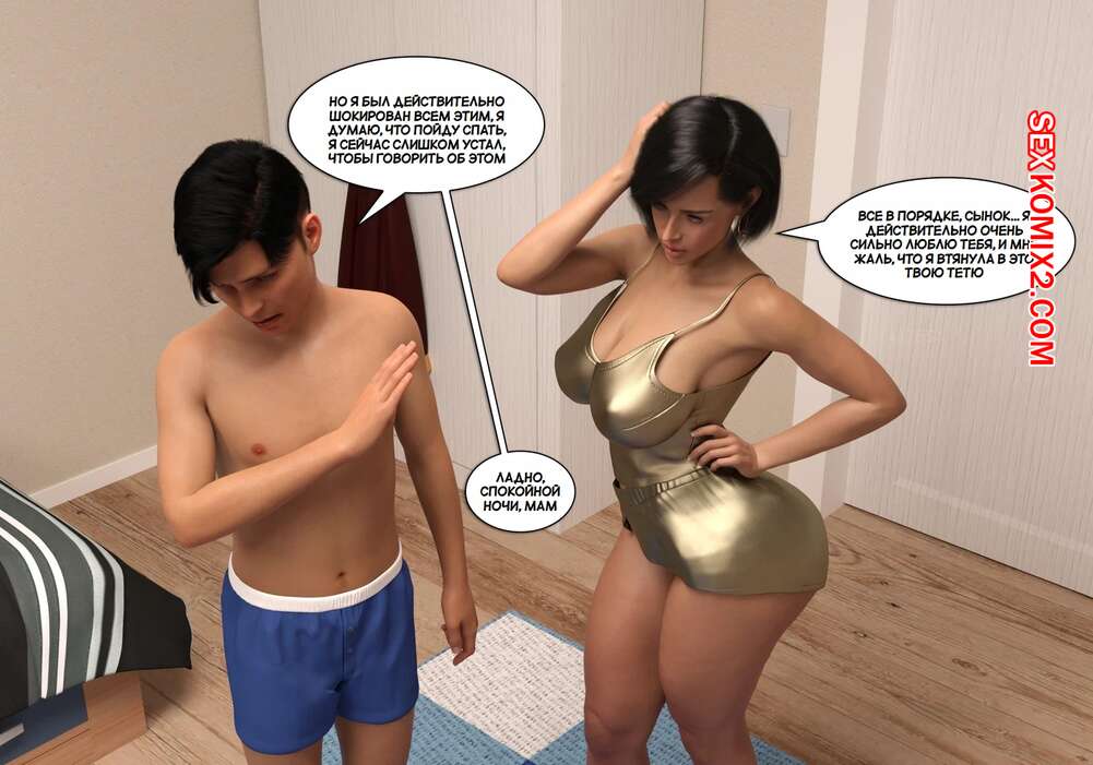 Порно комикс Что я наделал. Часть 3. What Ive done. NandoF Сисястая милфа пришла в комнату к молодому парню и стала сосать его большой хуй. Но им помешала горячая мамочка парня, которая спустя короткое время оказалась голой перед сыном.