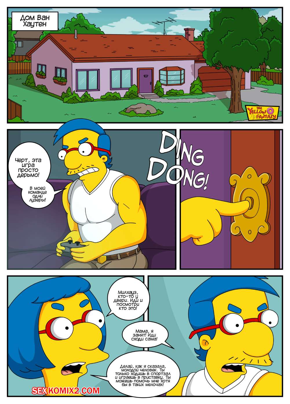 Порно комикс Симпсоны. Желтая фантазия. Анника Ван Хоутен. Annika Van Houten К Милхаусу приехала кузина и предложила потрахаться, но парень ей отказал. В итоге Барт пригласил девушку к себе в домик на дереве, где весь день трахал сисястую сучку своим большим членом.