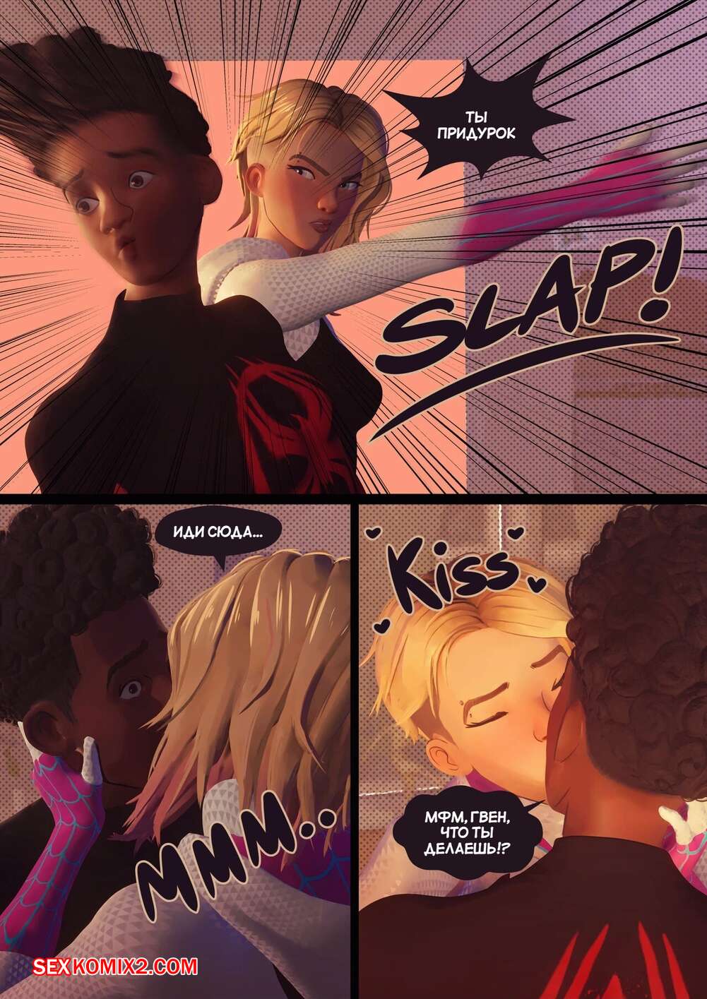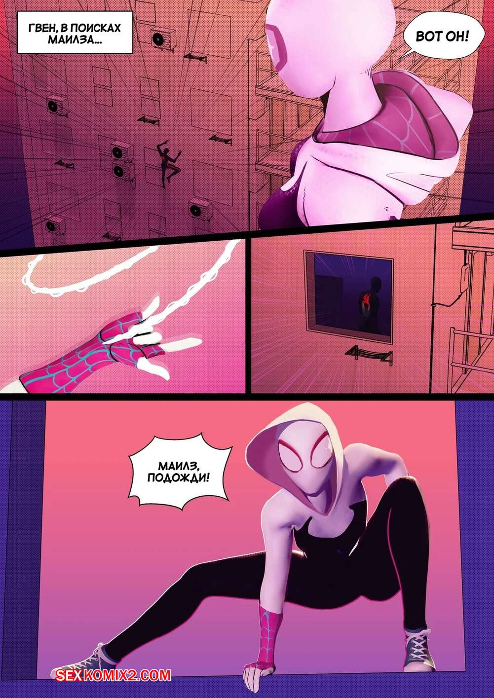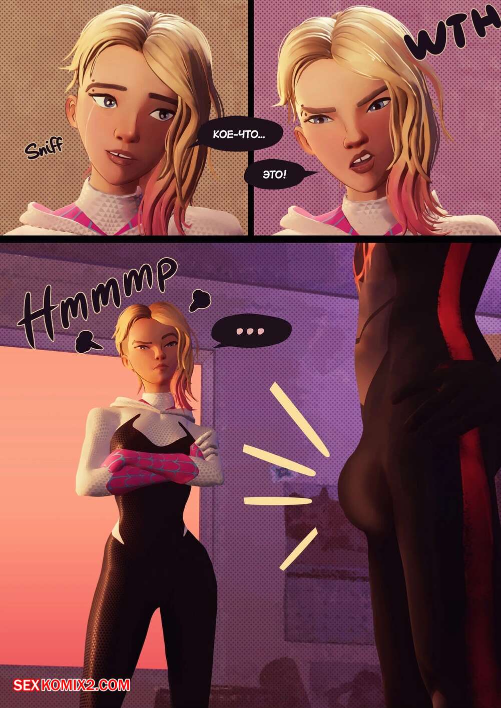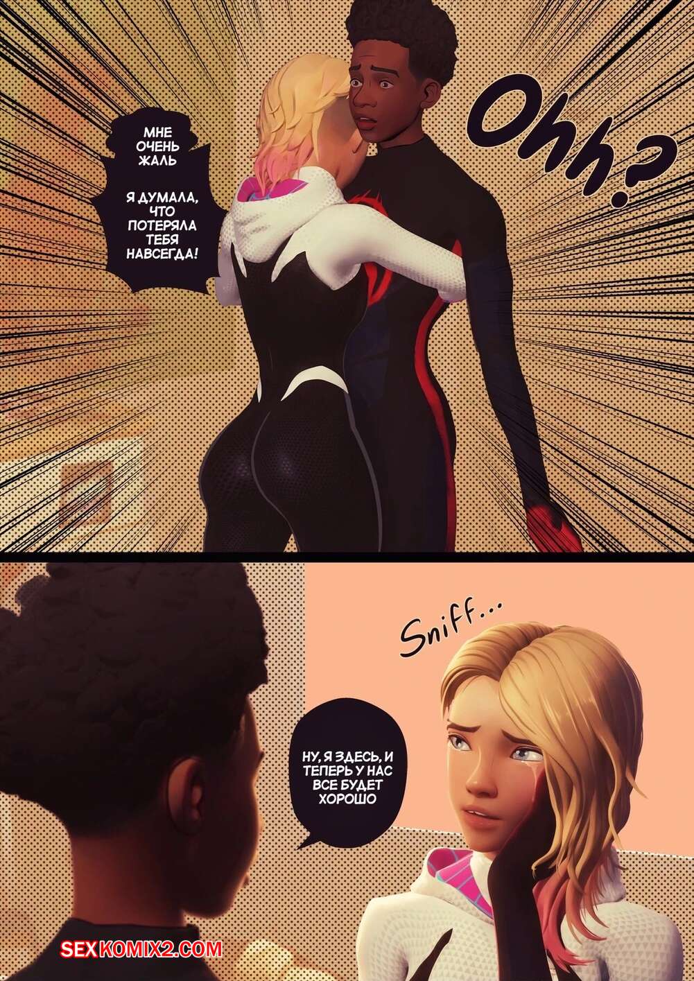 Порно комикс Человек Паук. Внутри Паучьей вселенной. Inside the Spider Verse. Gomiqo. Горячая блондинка Гвен была рада увидеть Майлза. Девушка заметила у парня стояк и решила немного повеселиться. Она разделась и отсосала хуй друга, после чего дала ему себя хорошенько выебать.