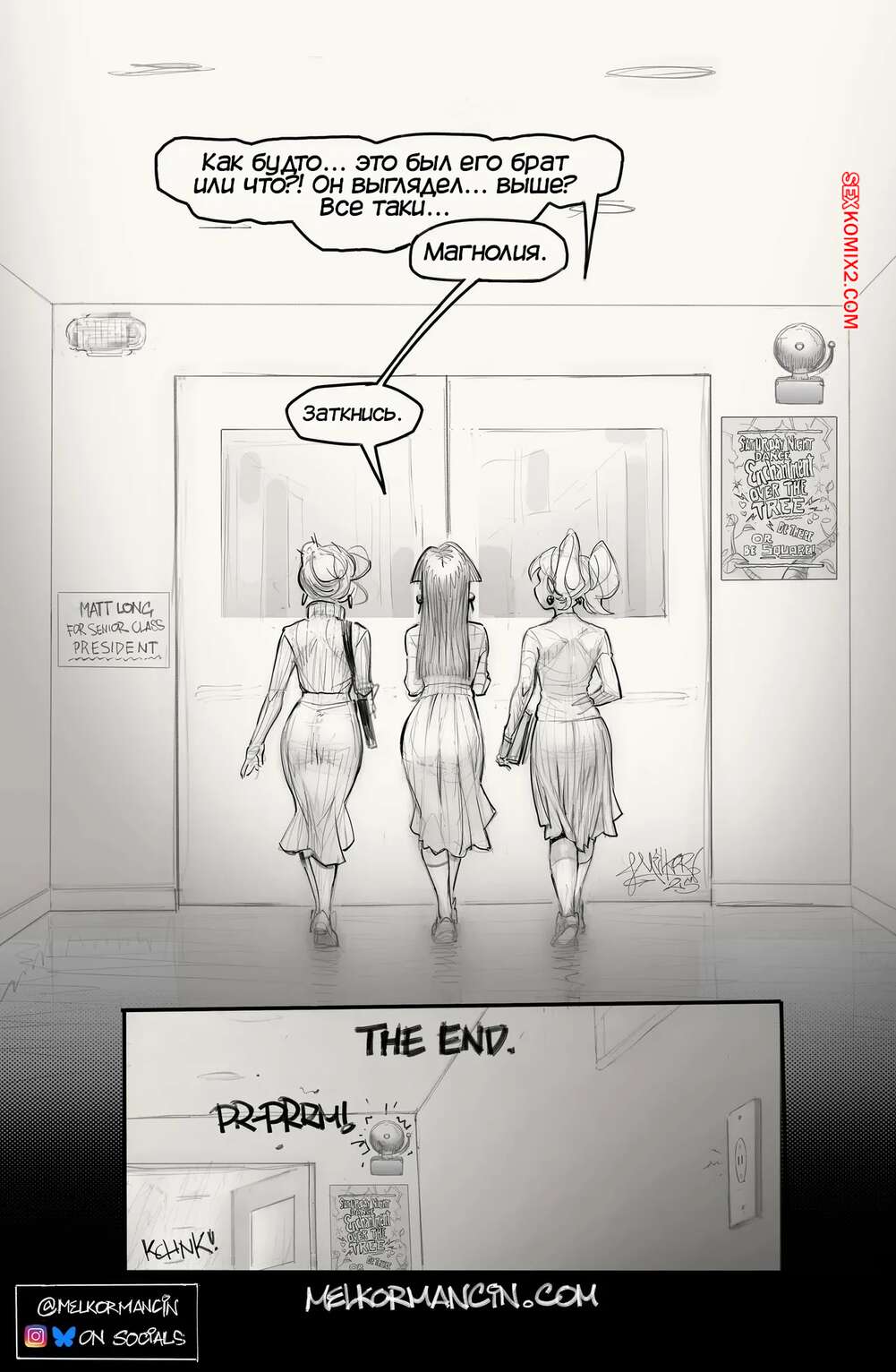 Порно комикс Обед с Тимом. Lunch Time With Tim. Melkor Mancin Горячие красотки без ума от большого члена молодого парня Тима. Они раздеваются перед ним и хорошенько сосут большой хуй парня, после чего дают ему себя хорошенько выебать.
