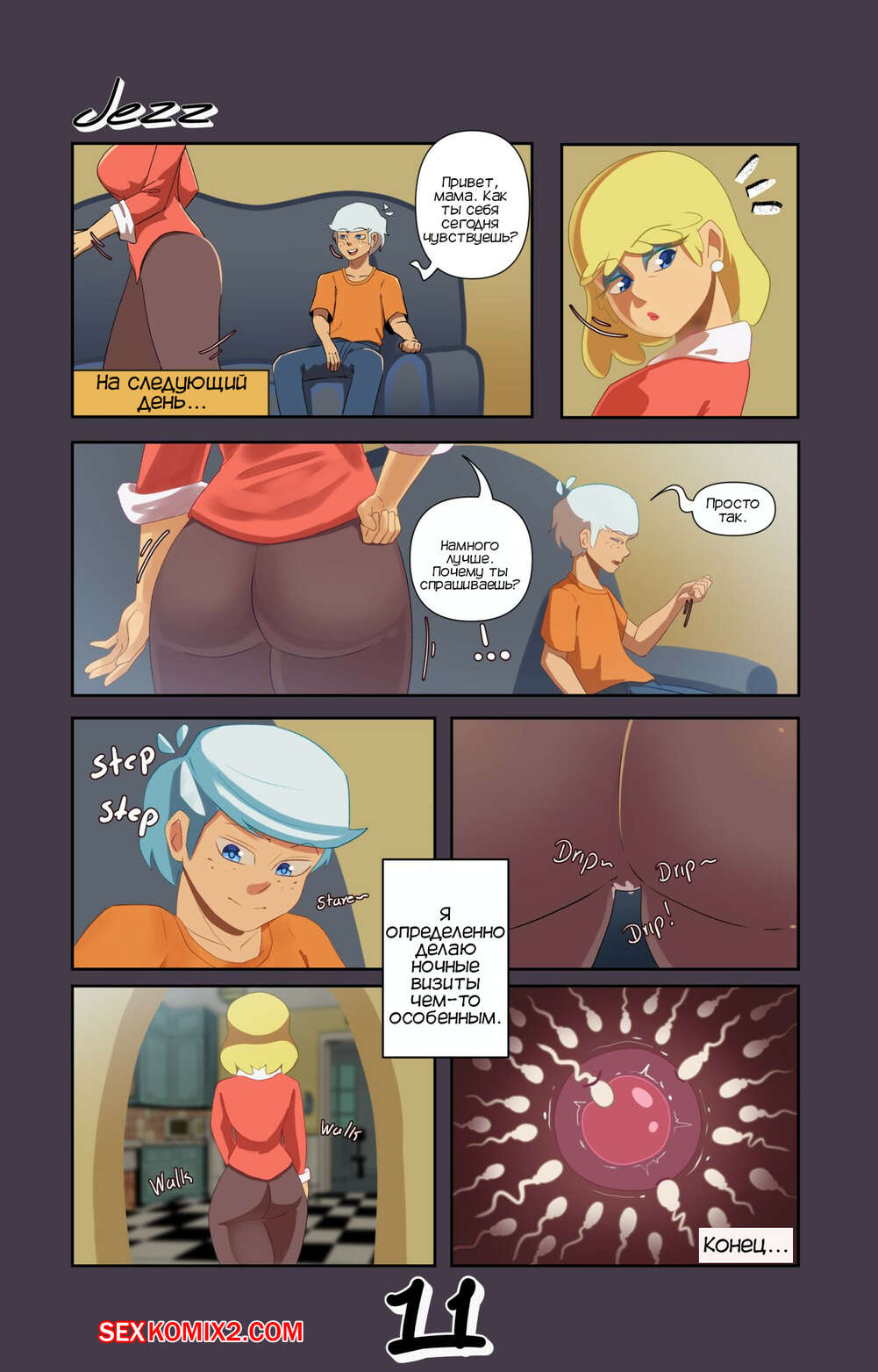Порно комикс Шумный дом. Ночной визит. The Loud House. Night Visit. Jezz G. Парень пришел в спальню к своей матери когда она крепко спала и воспользовался этим чтобы облизать ее сочный сиськи.