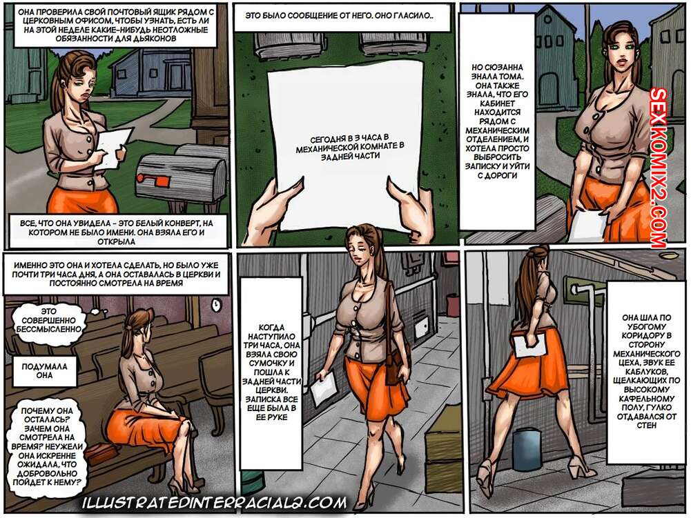 Порно комикс Сюзанна на церковной кухне. Suzanne In The Church Kitchen. IllustratedInterracial Сисястая брюнетка милфа является добровольцем на церковной кухне. Там с ней решил повеселиться темнокожий парень и дал красотке отсосать свой большой хуй, после чего выебал ее пизденку.