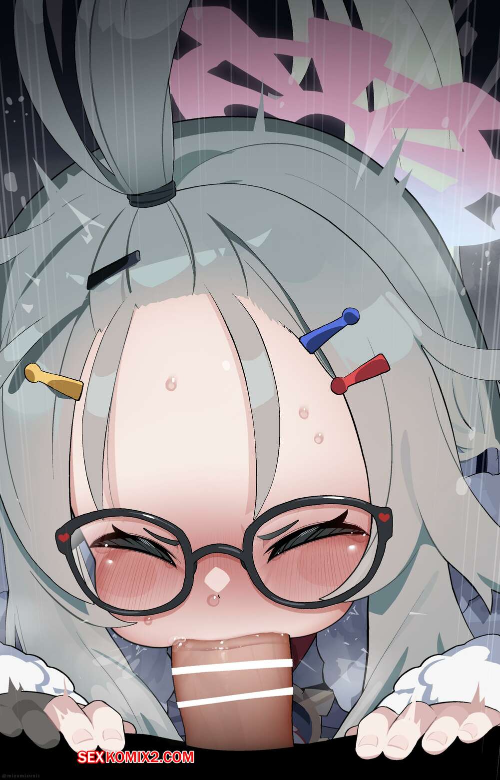 Порно комикс Mizumizuni. Himeki Meru. Химеки Меру Сексуальная блондинка была очень возбуждена и решила повеселиться со своим дружком. Красотка встала на колени и отсосала большой хуй парня, после чего он кончил ей в ротик.