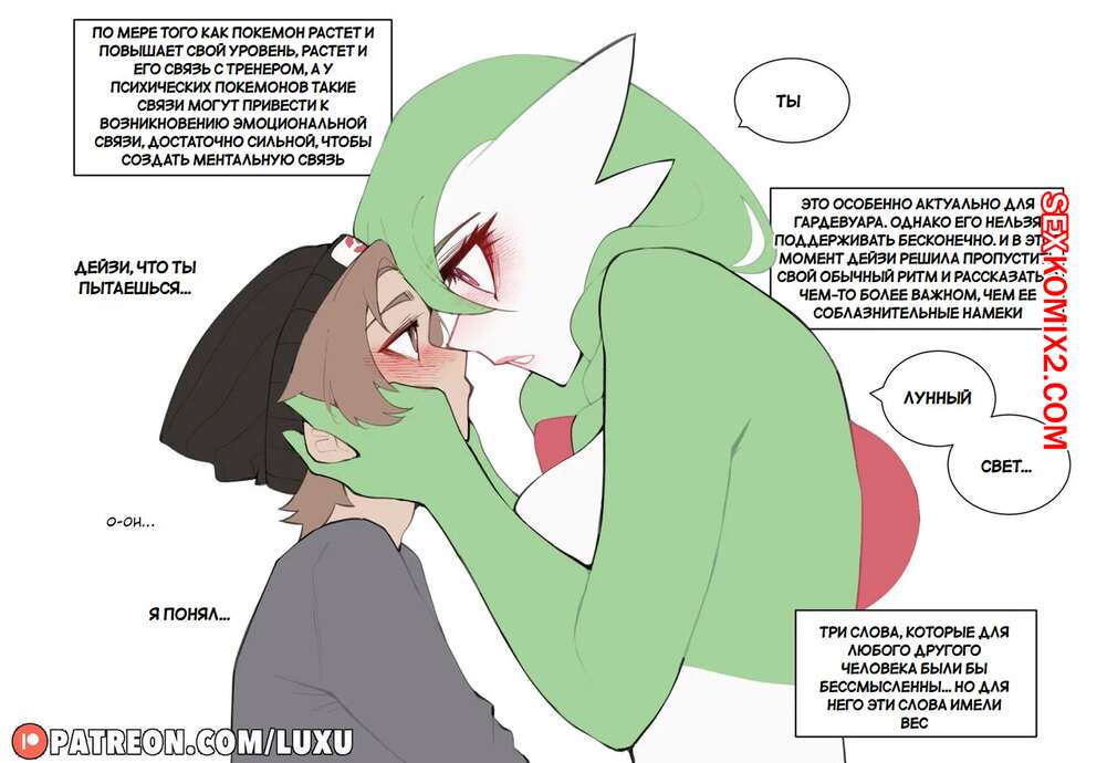 Порно комикс Pokemon. История тренера и его единственного Гардевуара. Luxuriass Парень расстался со своей девушкой и она ушла, все у него забрав. С парнем осталась только Гардевуар девушки и теперь они отлично проводят время вместе с парнем, лаская друг друга.