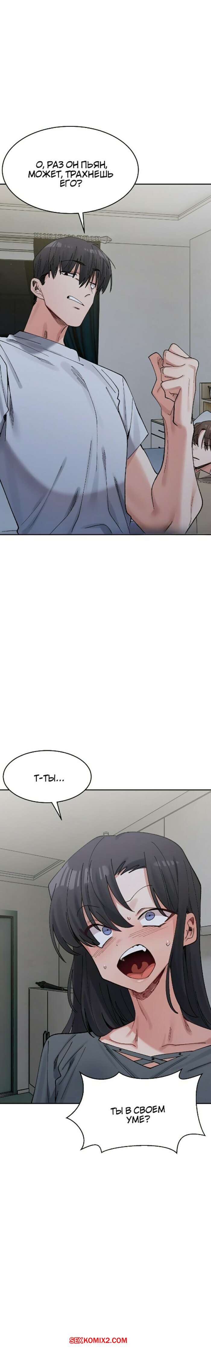Порно комикс Деликатные отношения. Часть 22 и 23 Сексуальная брюнетка была очень возбуждена и хотела трахаться. Красотка стала соблазнять парня, желая заняться с ним сексом, но он выгнал ее из своей комнаты и лег спать.