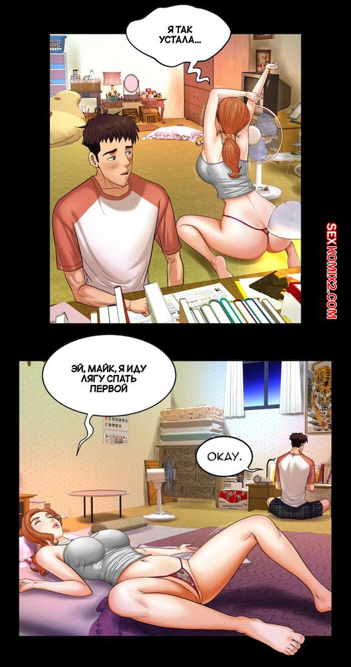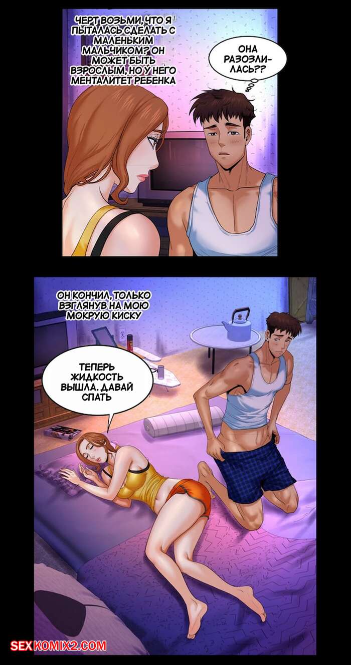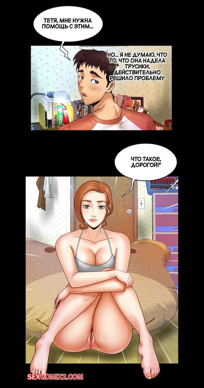 Порно комикс Моя тетя. Без цензуры. Часть 3. My Aunt. Toomics Сисястая милфа легла спать и парень возбудился, видя ее пизденку через тонкие трусики. Он достал свой член и был готов уже ее выебать, но домой вернулся муж женщины.