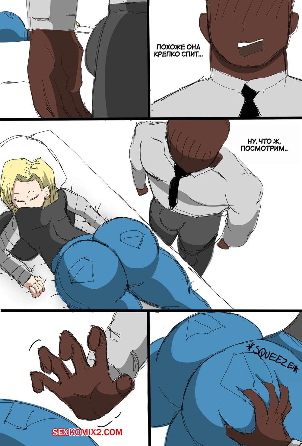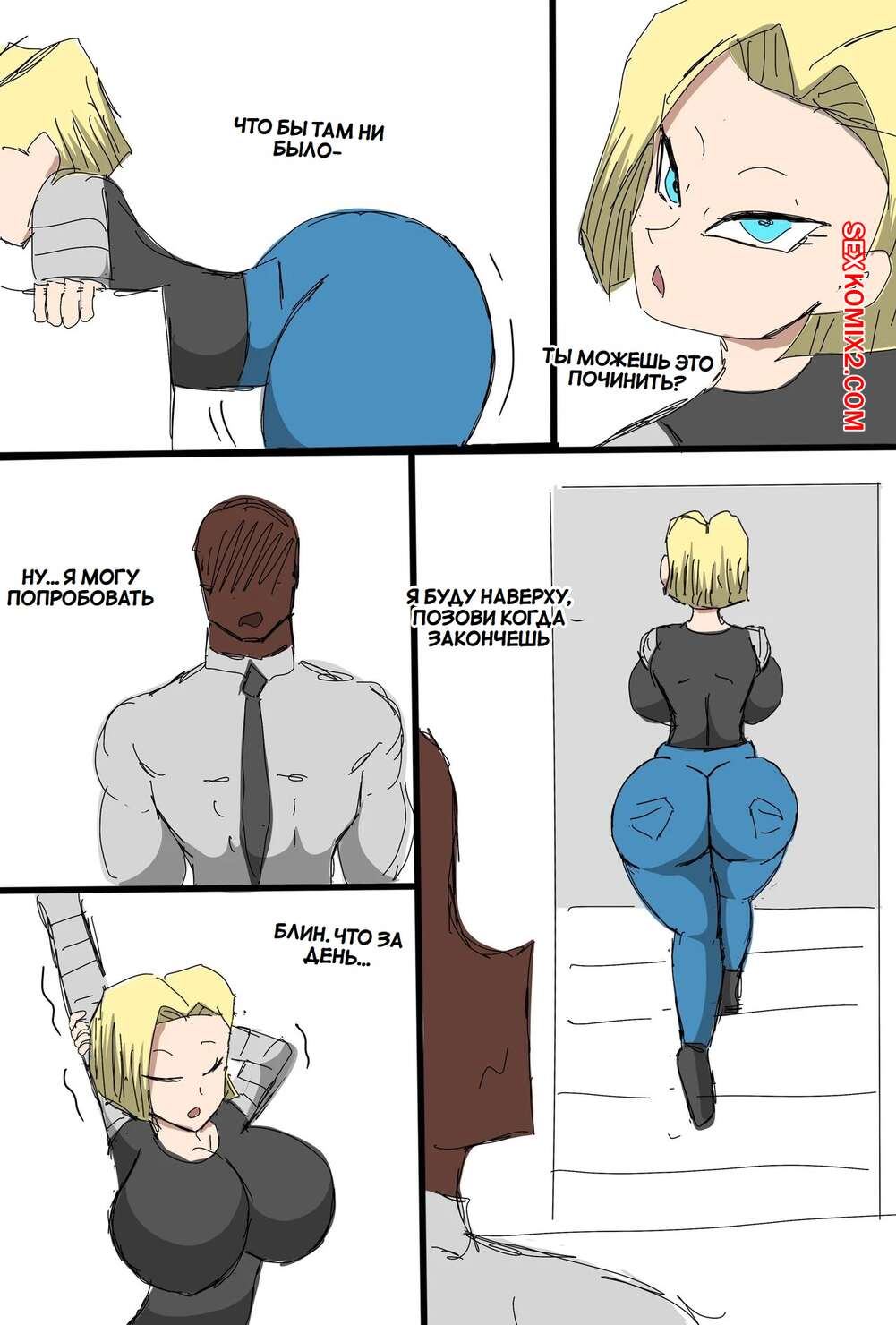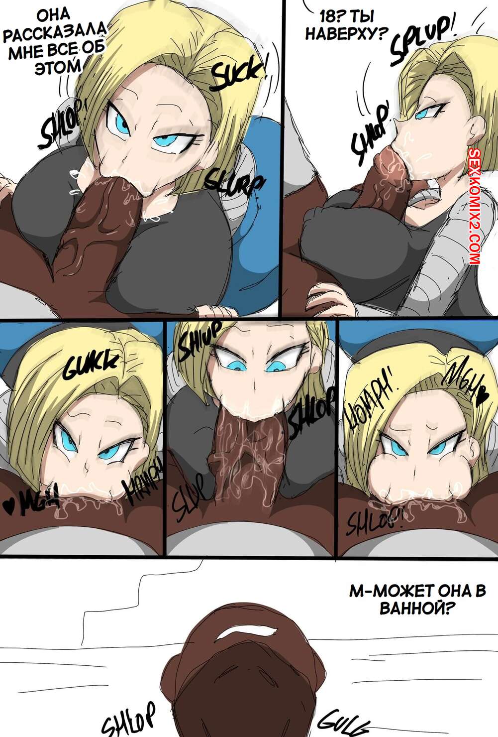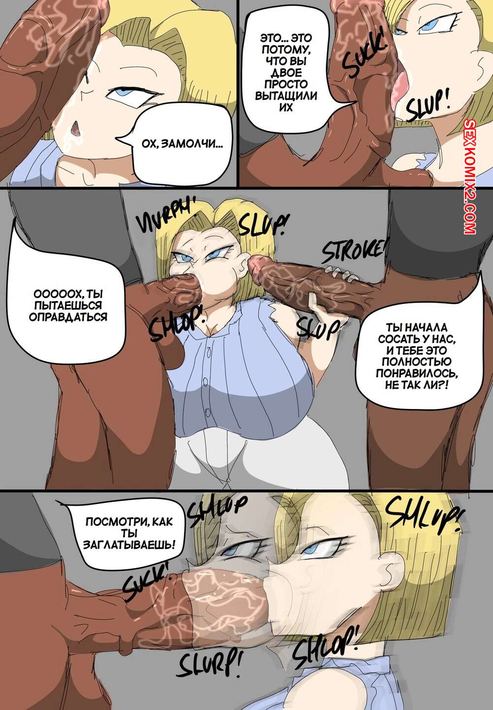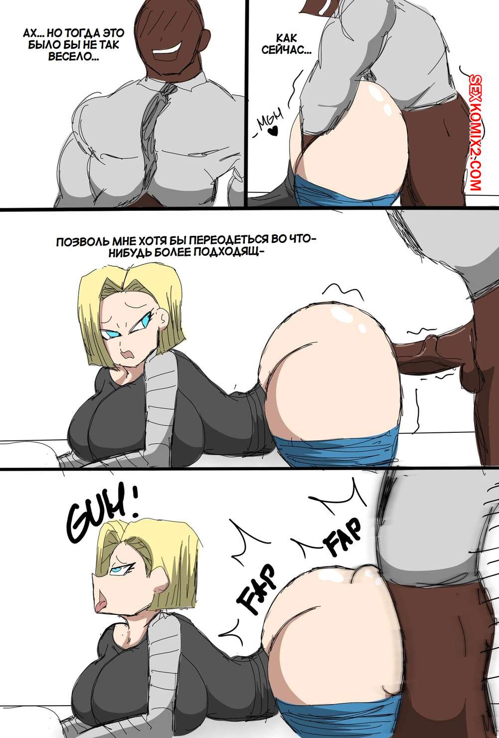 Порно комикс Dragon Ball. Андроид 18 очернена. Android 18 Blacked. ZDaddyEcchi. Горячая блондинка Андроид 18 без ума от больших хуев темнокожих парней. Девушка раздевается и хорошенько сосет хуи парней, после чего дает им себя выебать во все дырочки.