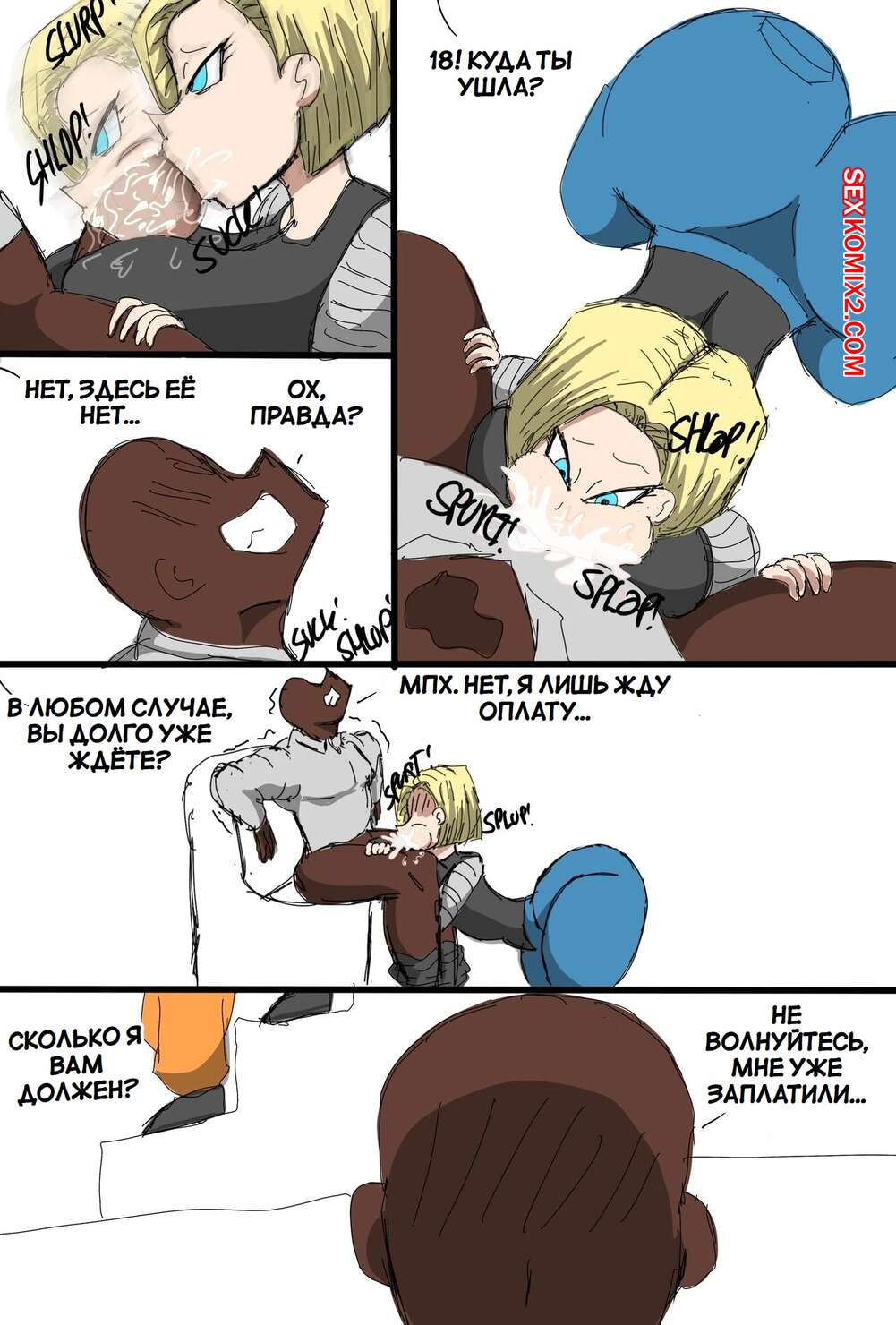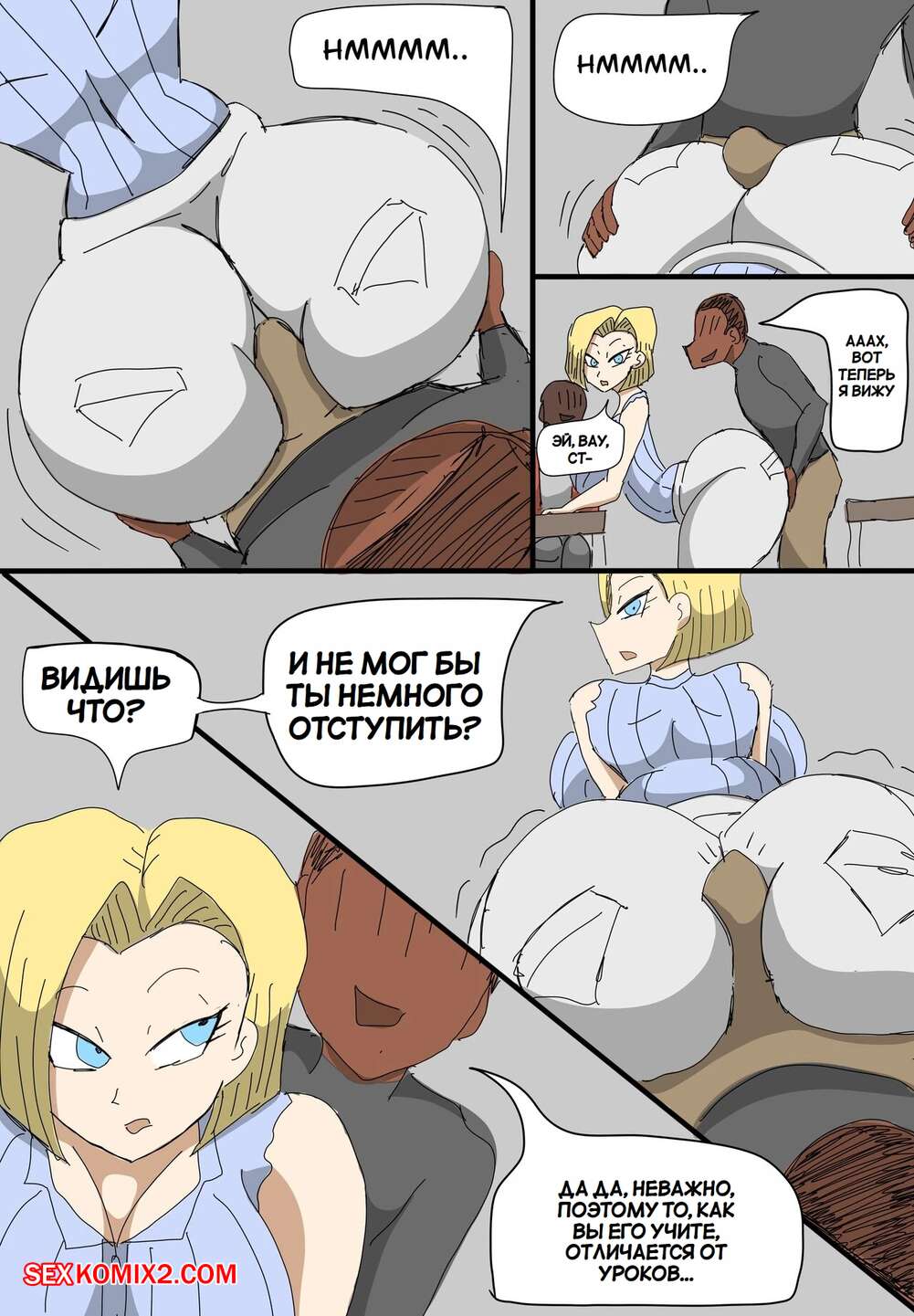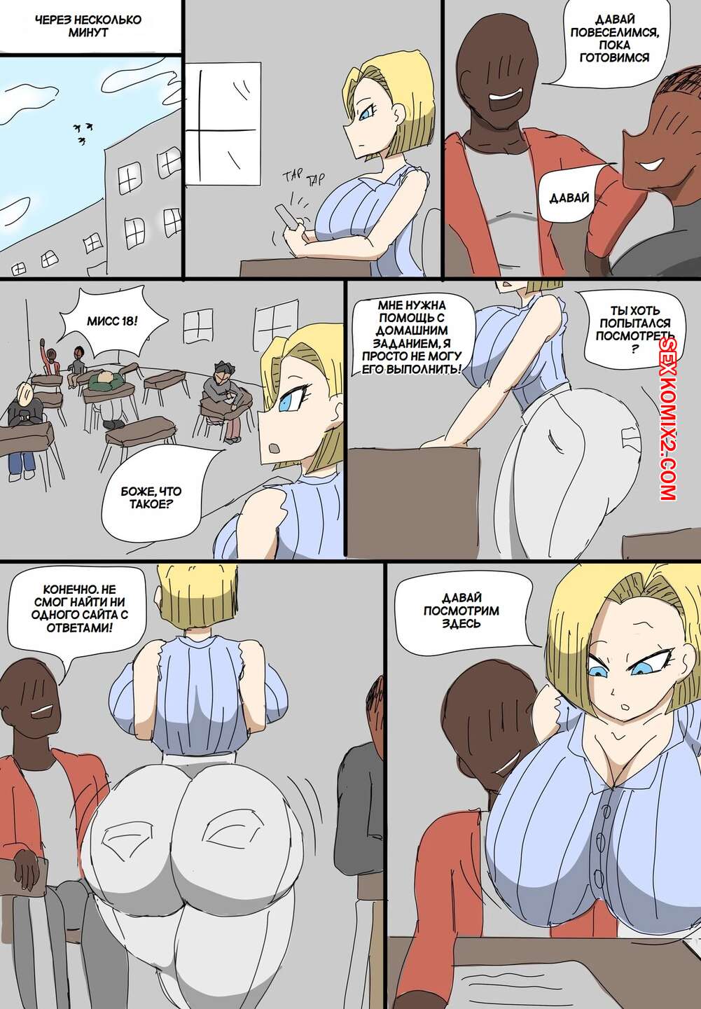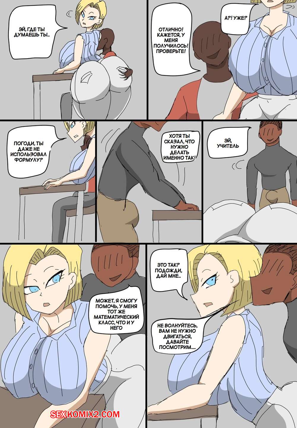 Порно комикс Dragon Ball. Андроид 18 очернена. Android 18 Blacked. ZDaddyEcchi. Горячая блондинка Андроид 18 без ума от больших хуев темнокожих парней. Девушка раздевается и хорошенько сосет хуи парней, после чего дает им себя выебать во все дырочки.