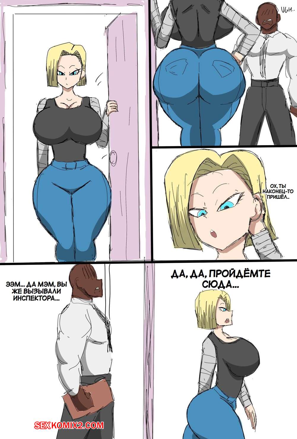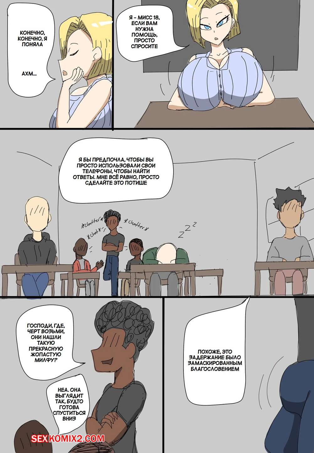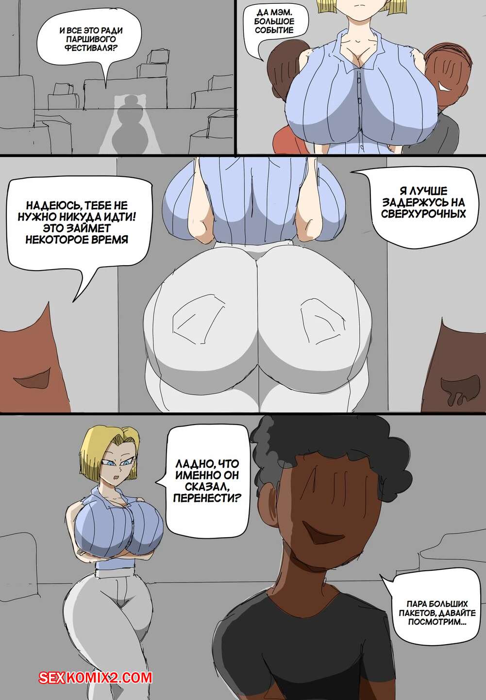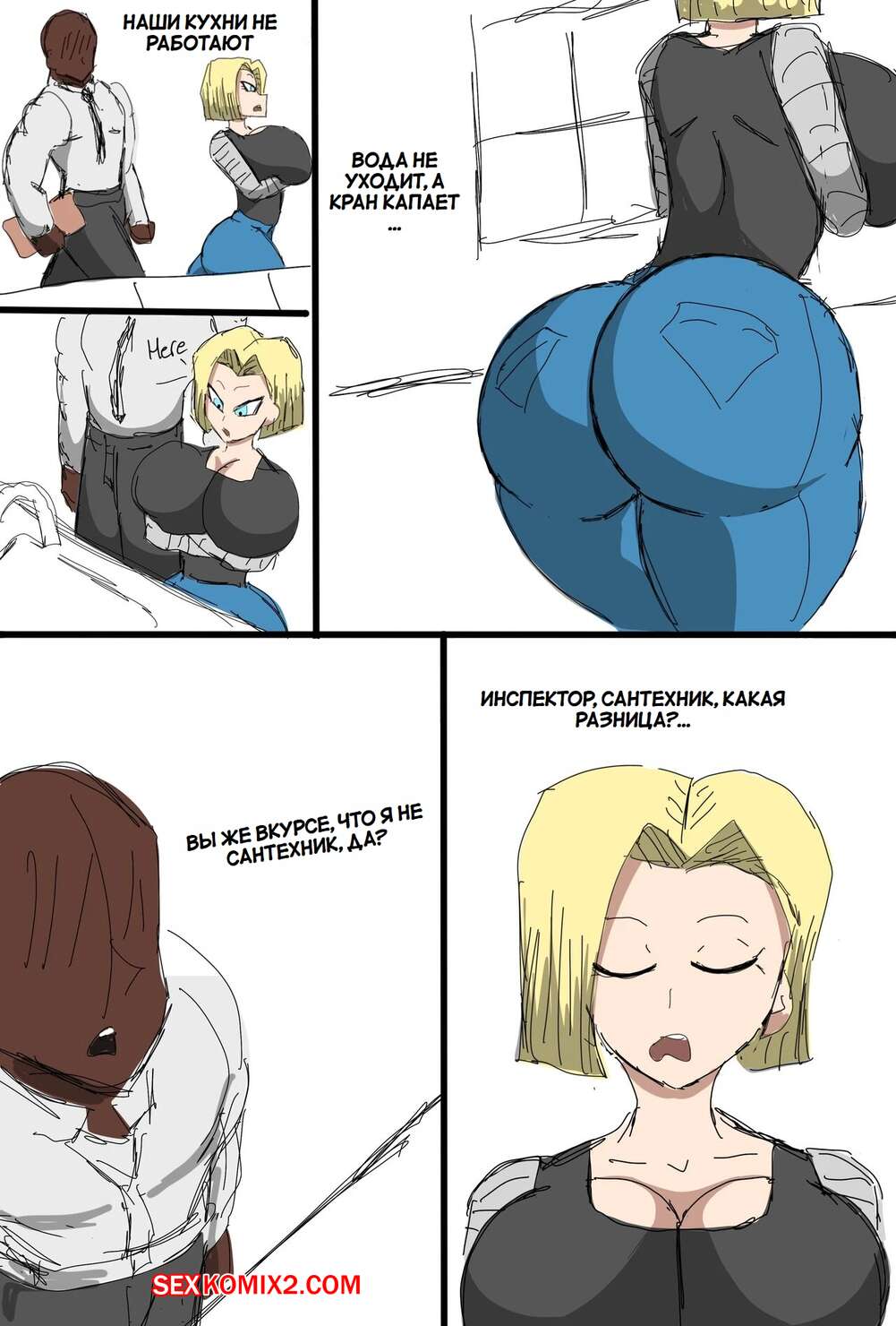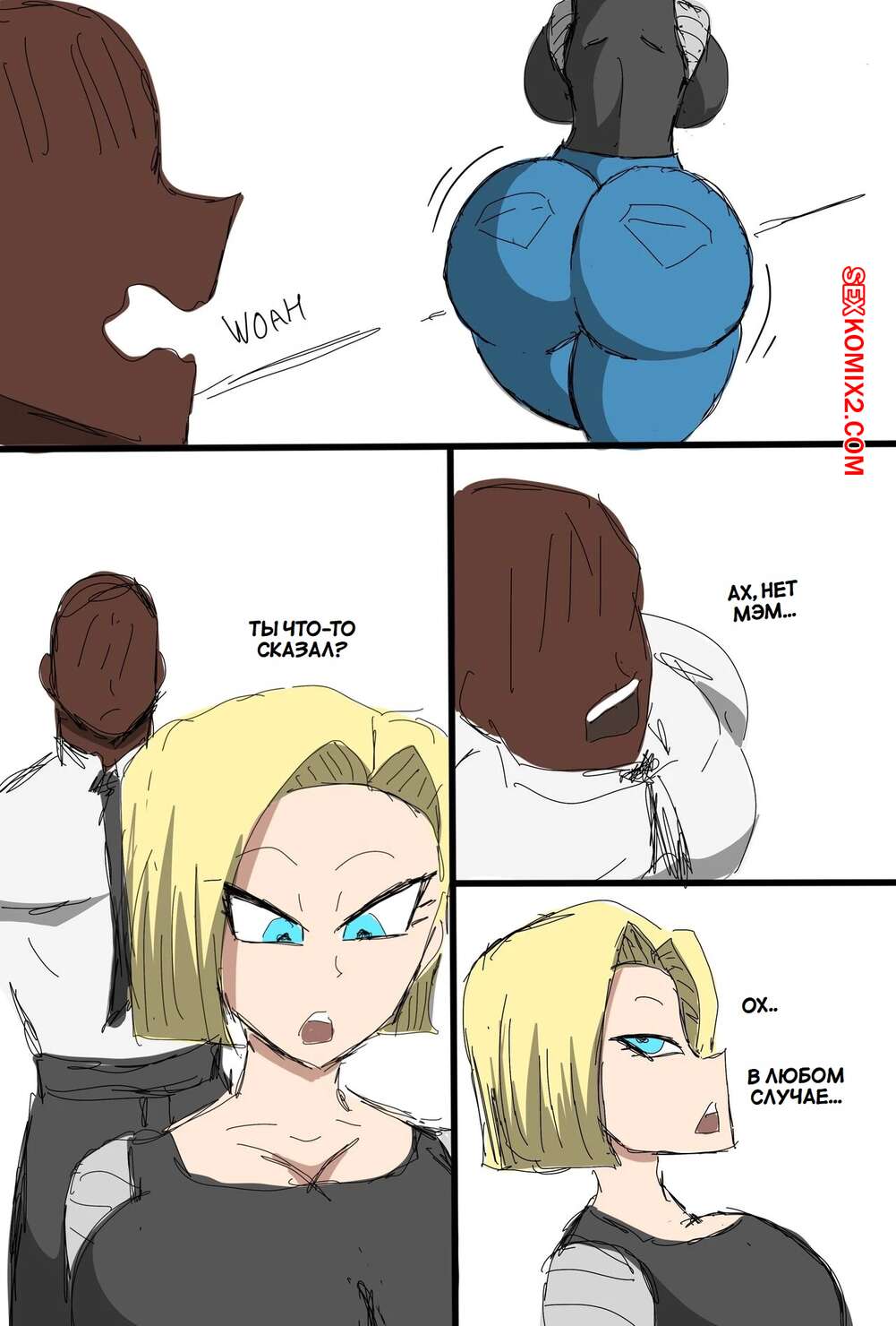 Порно комикс Dragon Ball. Андроид 18 очернена. Android 18 Blacked. ZDaddyEcchi. Горячая блондинка Андроид 18 без ума от больших хуев темнокожих парней. Девушка раздевается и хорошенько сосет хуи парней, после чего дает им себя выебать во все дырочки.