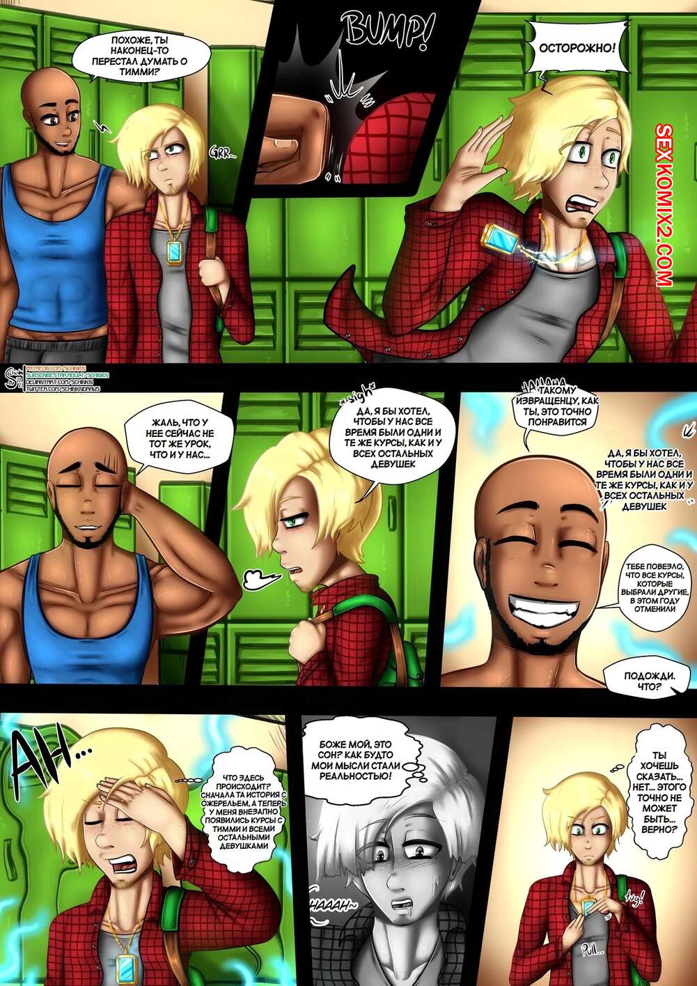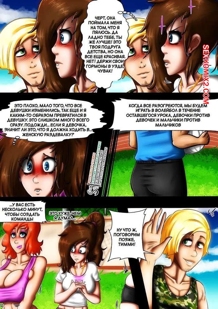 Порно комикс Fairly Oddparents. Изменяющее проклятие 2. The Altering Curse Spinoff Тимми проснулся со странным ожерельем, который влияет на девушек рядом с ним, сильно их возбуждая. Во время урока физкультуры парень заметил, что с ним творится чтото неладное и он превращается в сексуальную девушку.