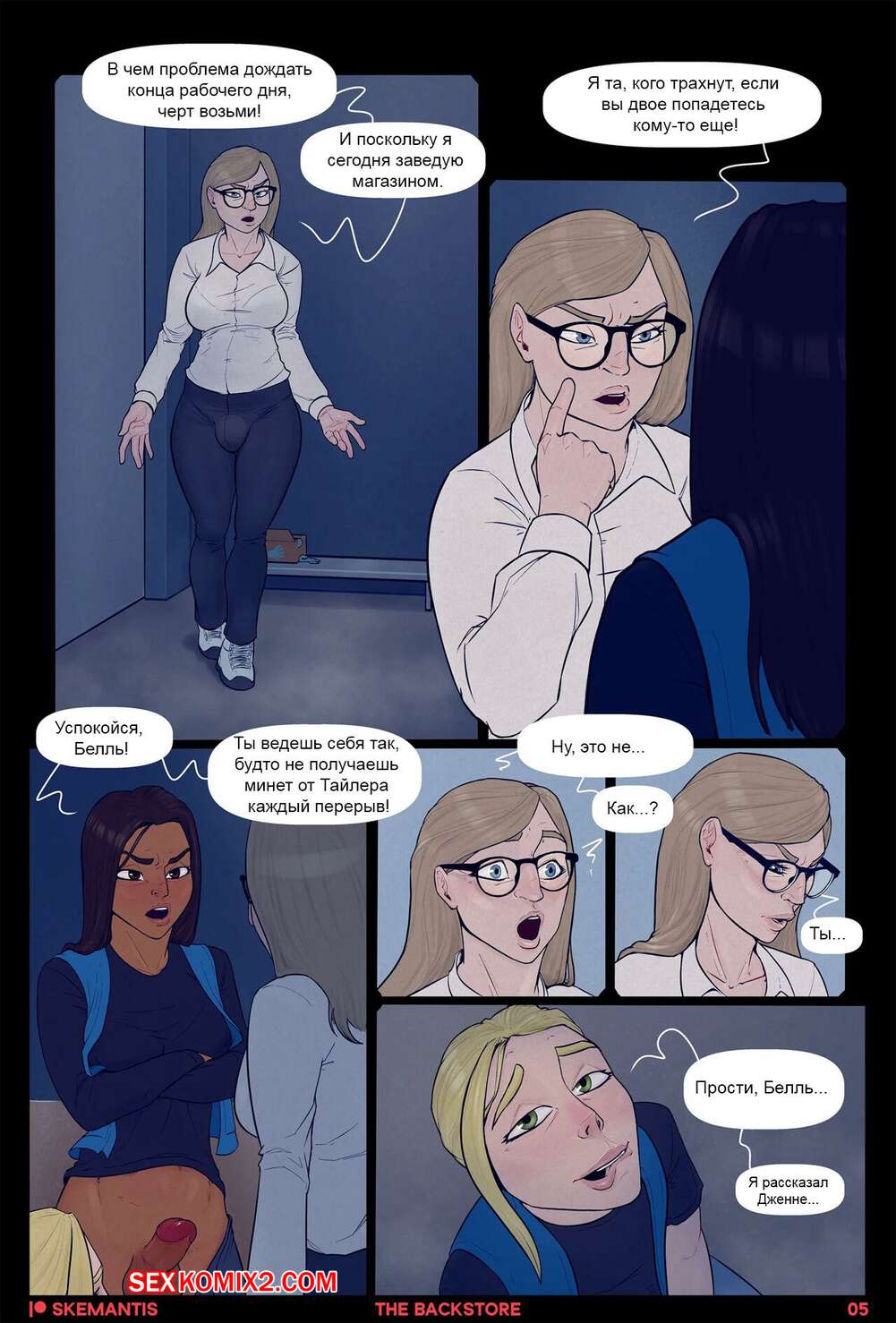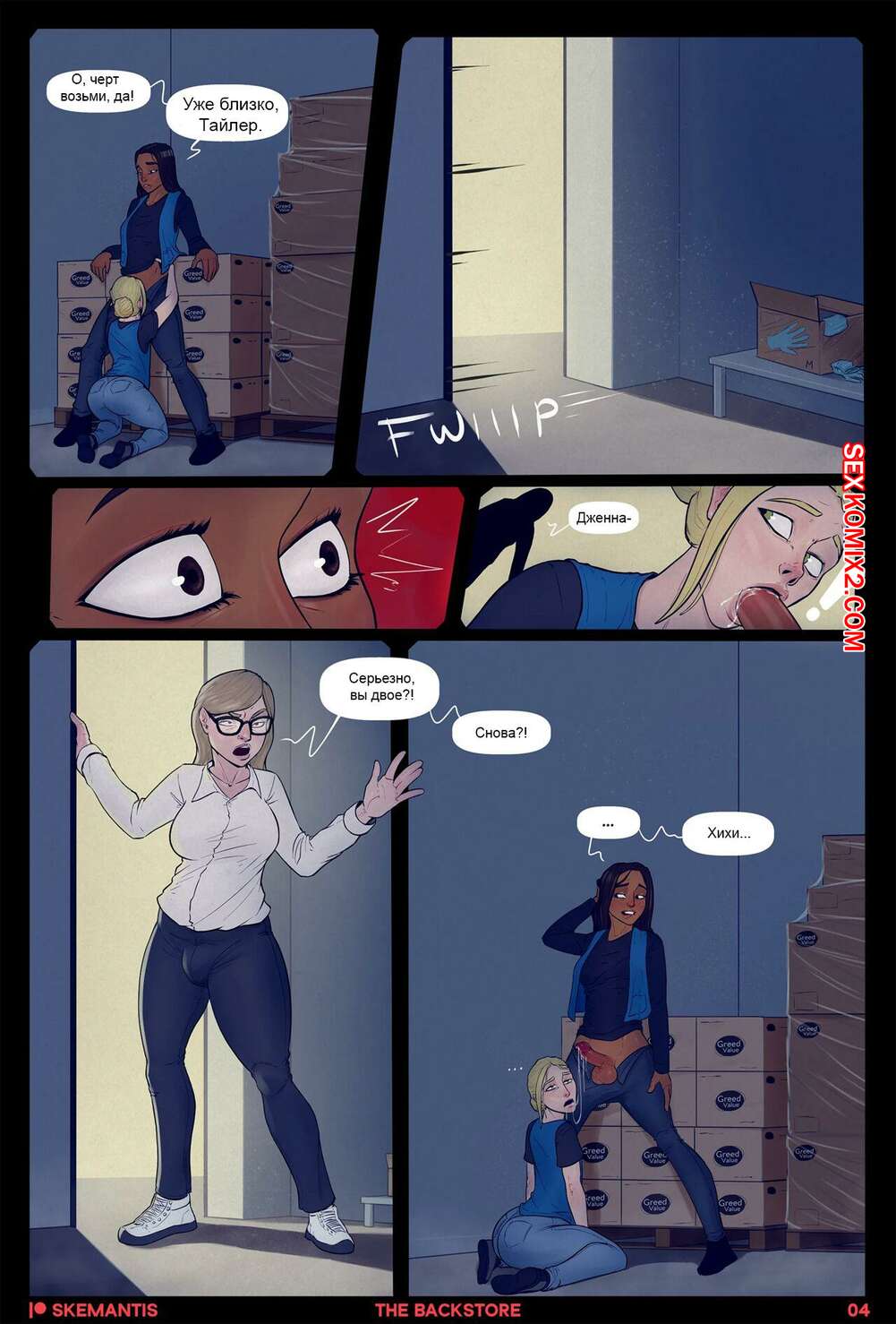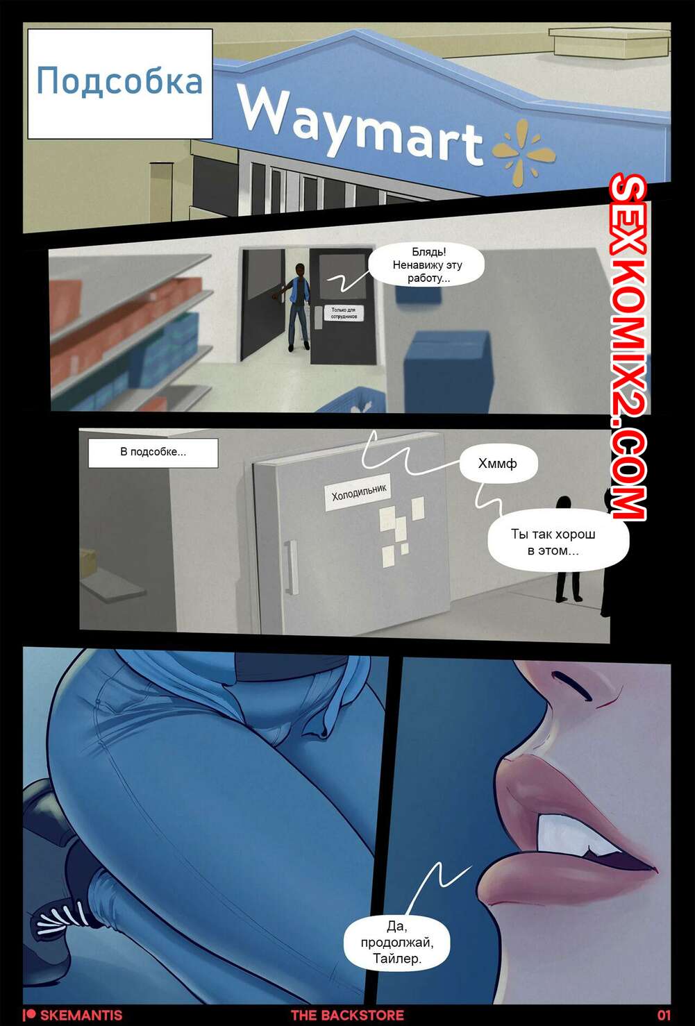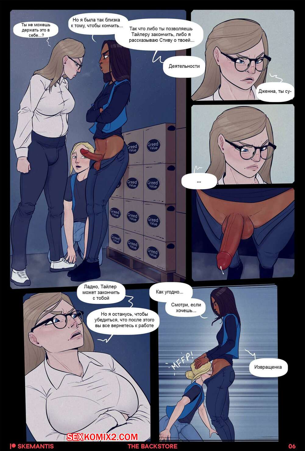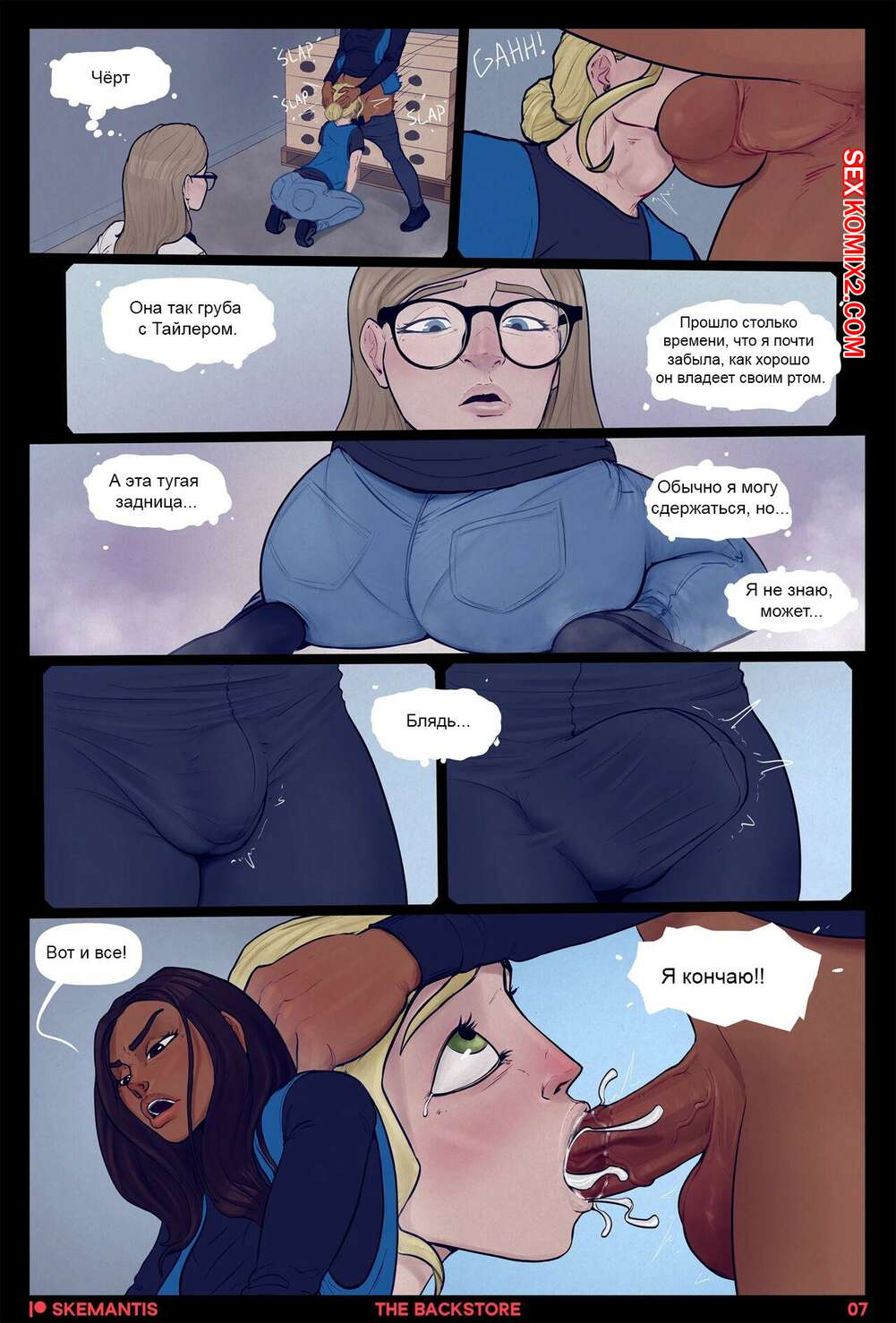 Порно комикс Подсобка. Часть 1. Skemantis Горячие красотки решили отдохнуть от работы и отправились в подсобку. Девушка встала на колени и отсосала большой хуй своей подруги, после чего дала ей выебать свою задницу.