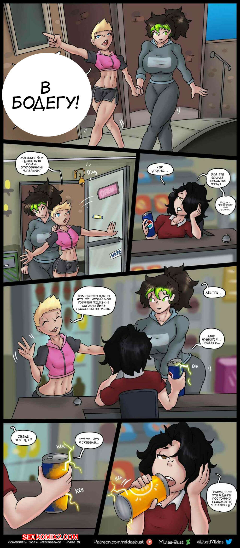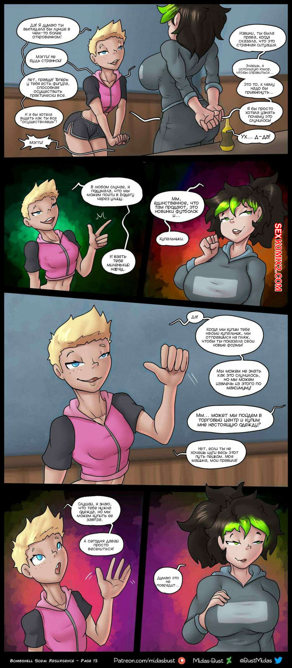 Порно комикс Возрождение бомбической газировки. Bombshell Soda Resurgence. Midas Bust Под влиянием волшебной газировки две красотки сильно возбудились и решили повеселиться. Они разделись и стали ласкать друг дружку, после чего занялись страстной лесбийской еблей.