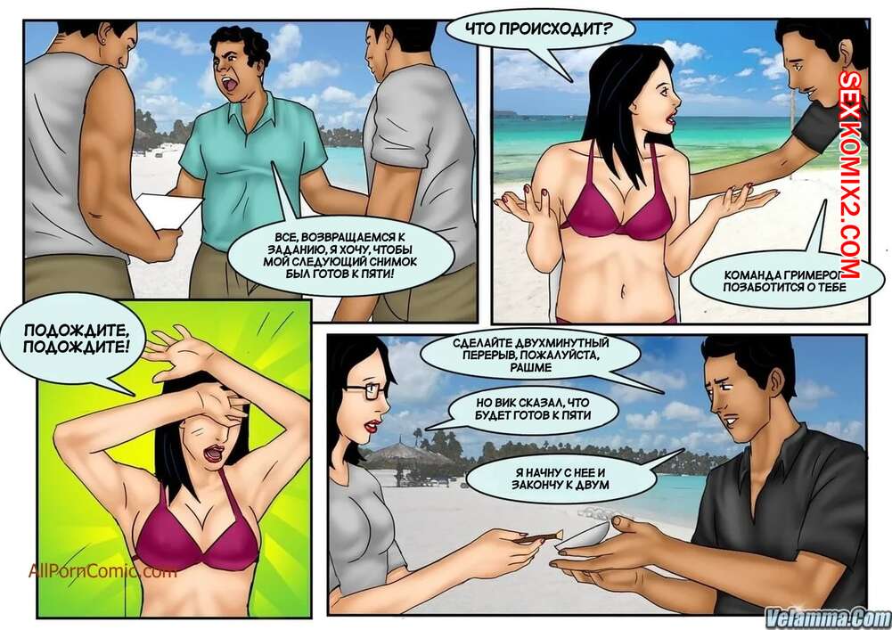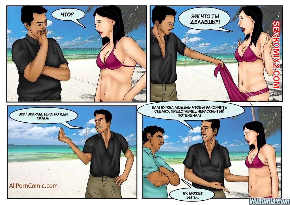 Порно комикс Веена. Часть 10. Veena. Velamma Горячая сисястая милфа отправилась на пляж, где она познакомилась с парнем, который предложил ее пофоткать. Красотка разделась перед новым знакомым и отсосала его большой хуй, после чего дала ему себя выебать.