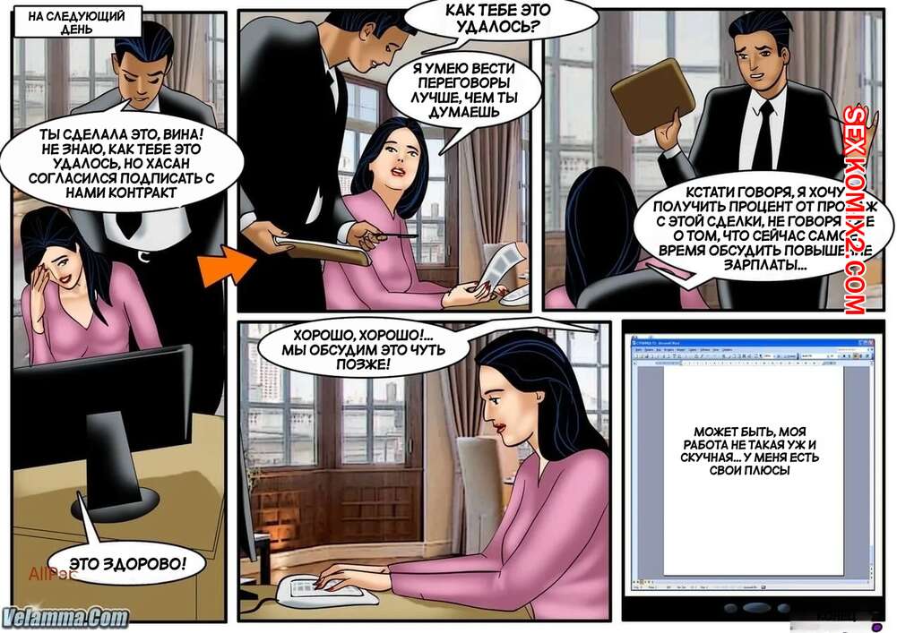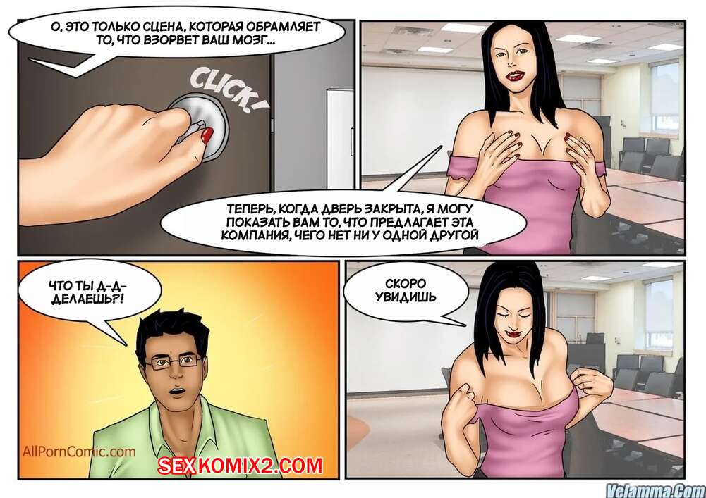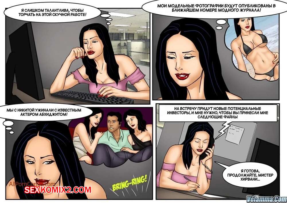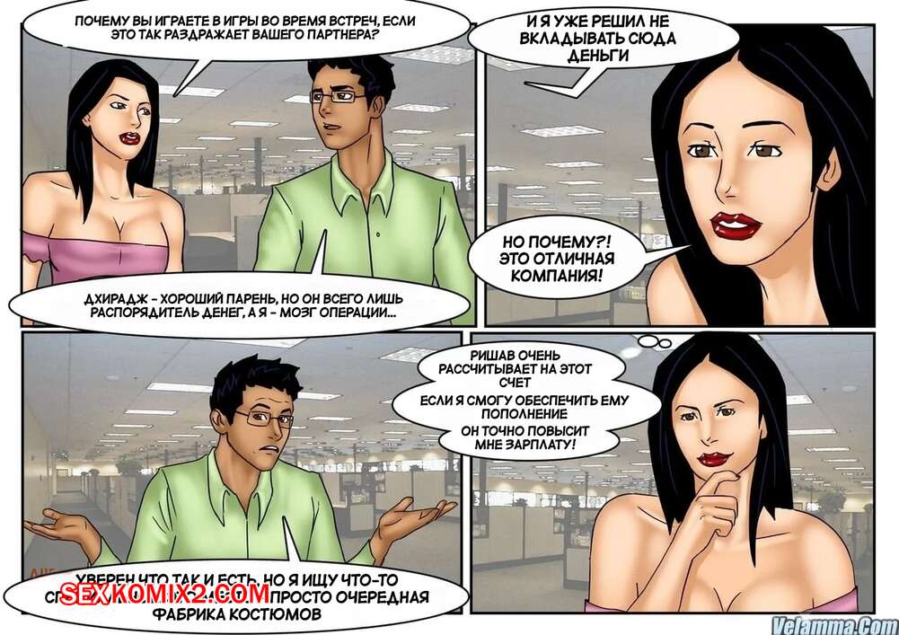 Порно комикс Веена. Часть 12. Veena. Velamma Сисястая брюнетка милфа была очень возбуждена и решила повеселиться с молодым парнем у себя на работе. Красотка разделась и отсосала большой хуй парня, после чего дала ему выебать свою задницу.