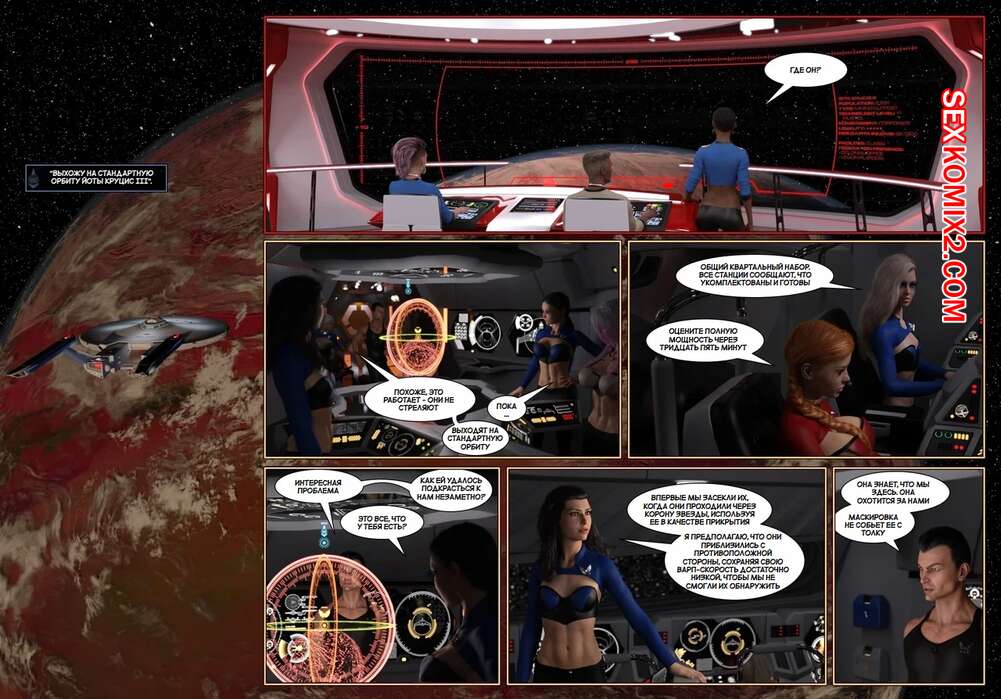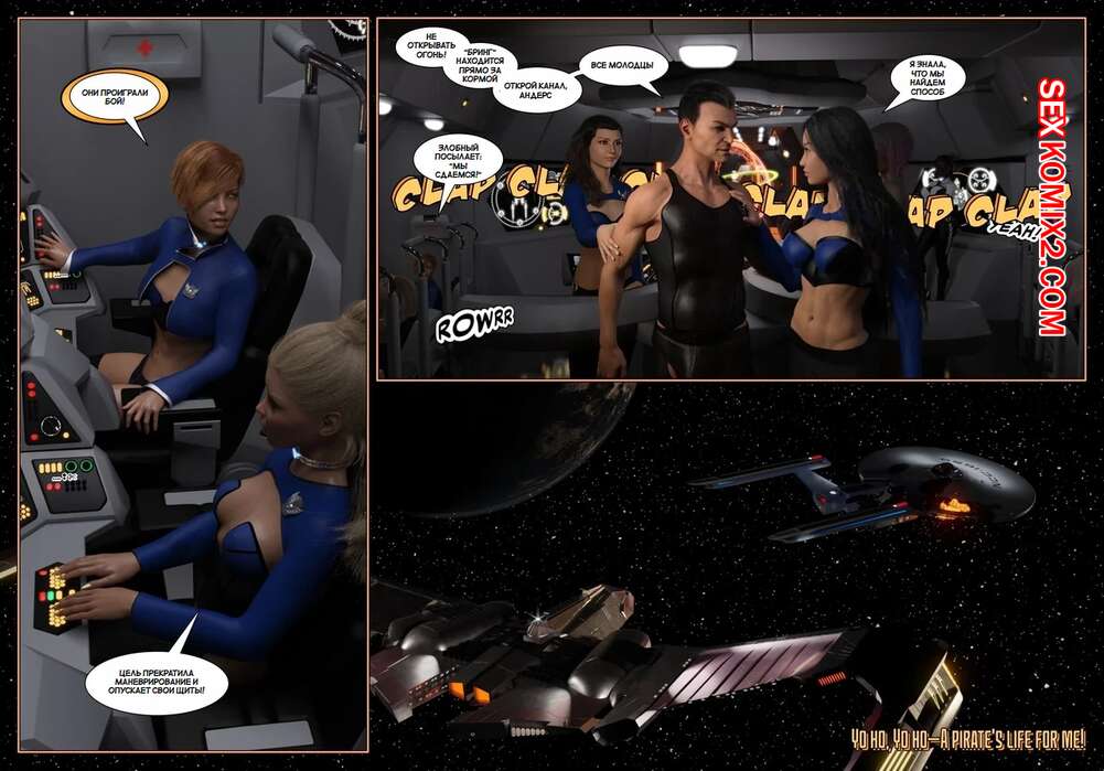 Порно комикс Пираты Угольного Мешка. Часть 13. Pirates of the Coal Sack. DangerousLines Экипаж кораблся отдыхал в своих каютах, но внезапно объявили общий сбор. Все быстро оделись и прибыли на свои места, после чего вступили в космический бой.