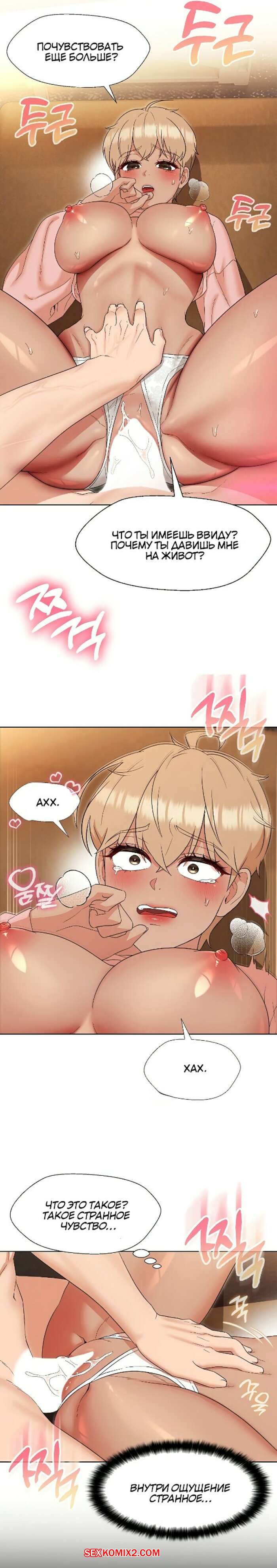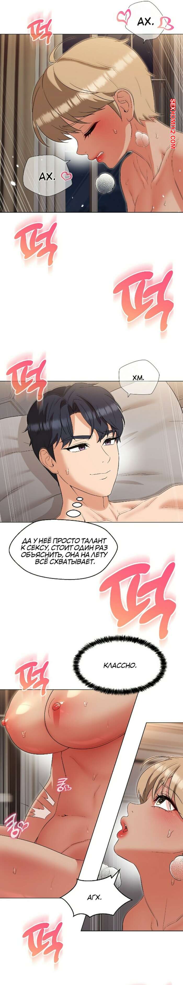 Порно комикс Хозяйка особняка, моя бывшая учительница. Часть 20 и 21 и 22 Сексуальная блондинка разделась перед парнем и возбудила его шикарным телом. Девушка раздвинула ножки и дала парню себя хорошенько выебать, получив огромное удовольствие.