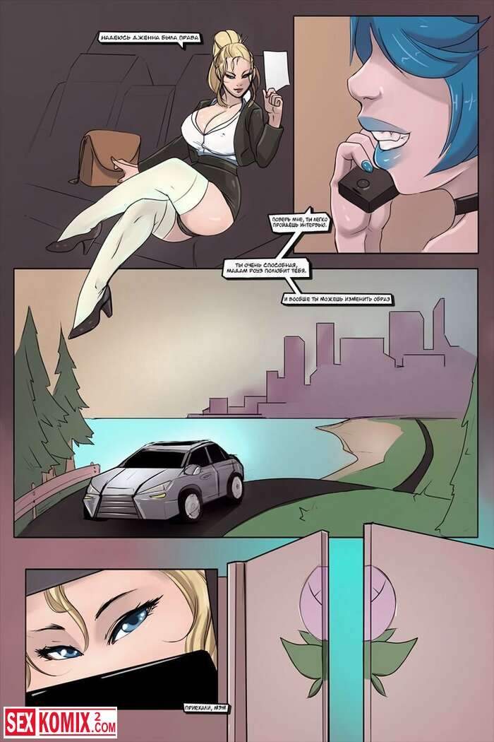 Порно комикс Розовый сад. Репортерша с большими сиськами поехала в поместье богатой женщины, чтоб взять у ней интервью. Она попадает в лесбийские чары этого развратного дома.