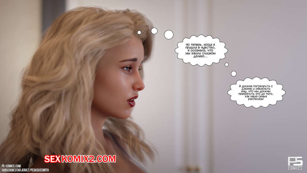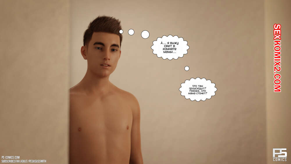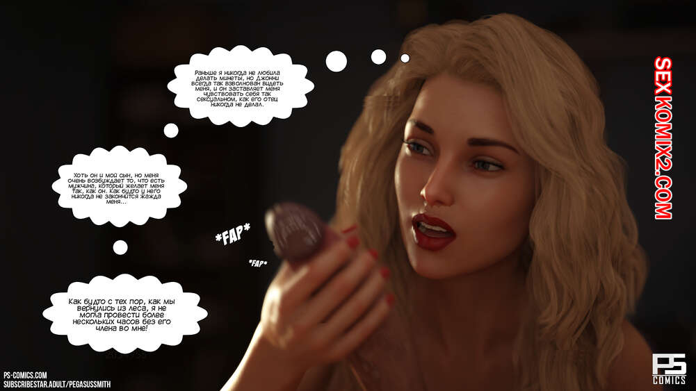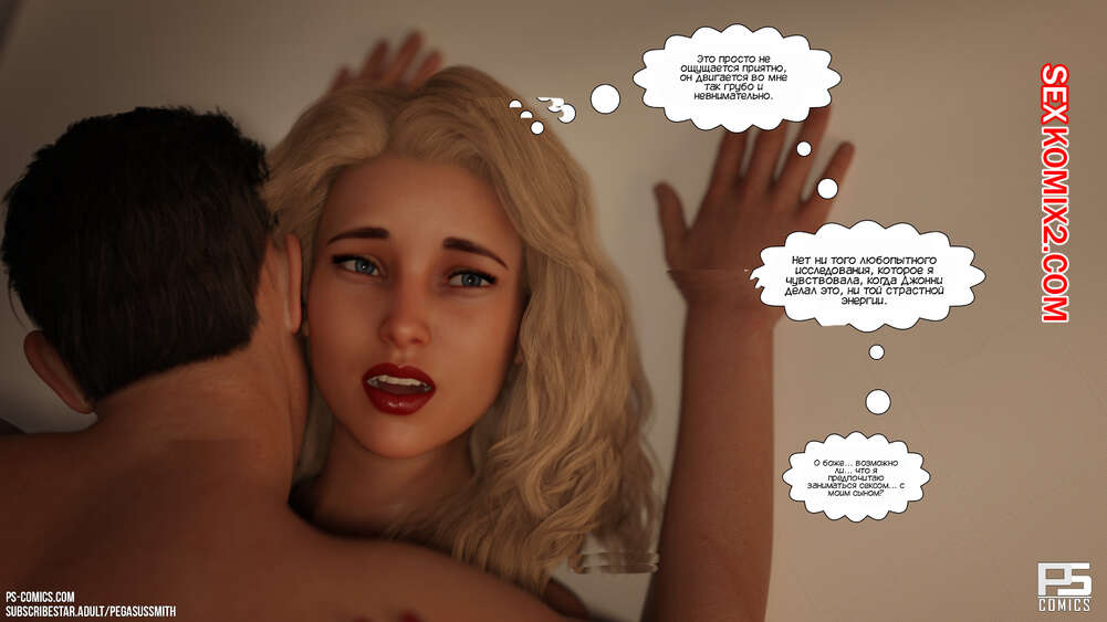 Порно комикс Заблудившиеся в лесу. Часть 4. Lost In The Woods. Pegasus Smith После ночного секса с сыном горячая милфа испытывает сильную вину перед мужем. Красотка отправилась в комнату к сыну, чтобы сообщить ему о том, что они больше не могут заниматься сексом.