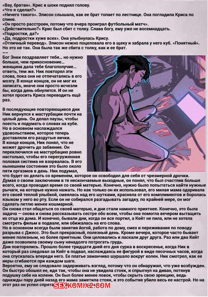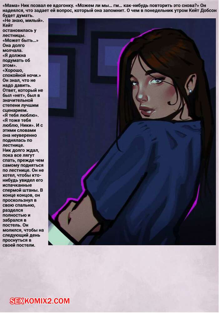 Порно комикс Головоломка. Часть 4. rawlyrawls Горячая брюнетка милфа продолжает ощущать влечение к своему сыну. Красотка пришла в комнату к парню и оседлала его, вызвав у парня стояк, но смогла вовремя остановиться.