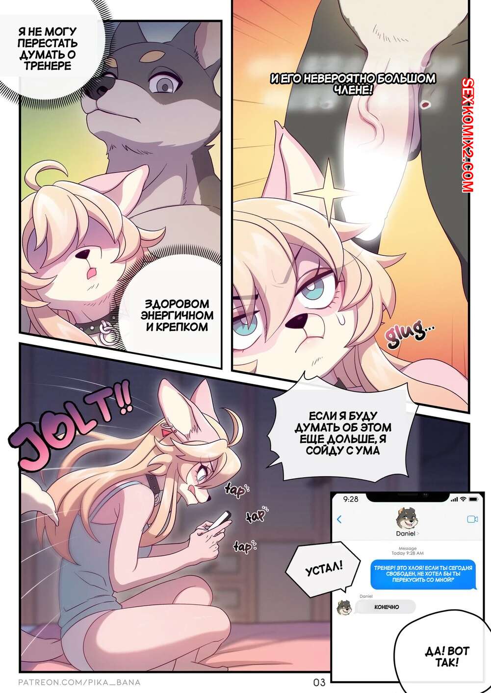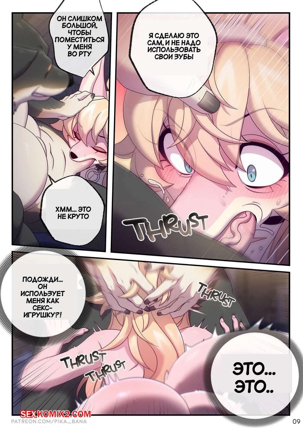 Порно комикс Моя необычная игрушка. My Fancy Toy. Strong Bana. Сексуальная блондинка фурри без ума от большого члена своего дружка. Она раздевается и сосет хуй парня, после чего дает ему себя выебать и кончить в нее.