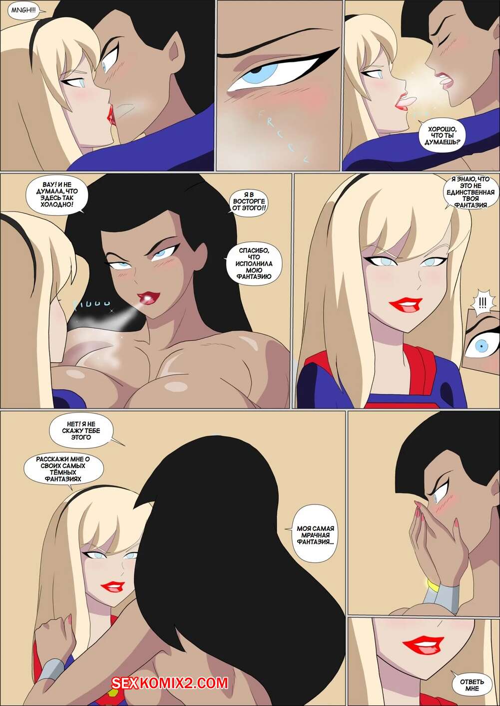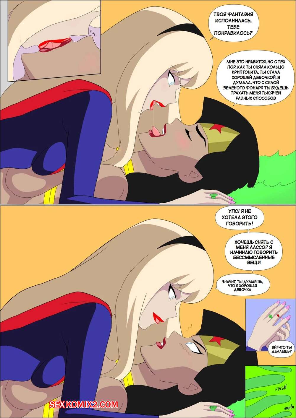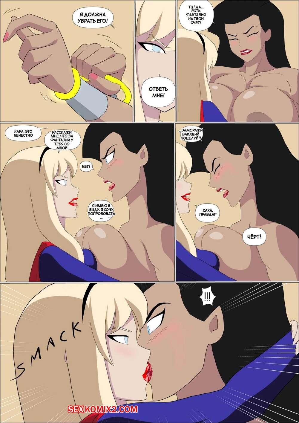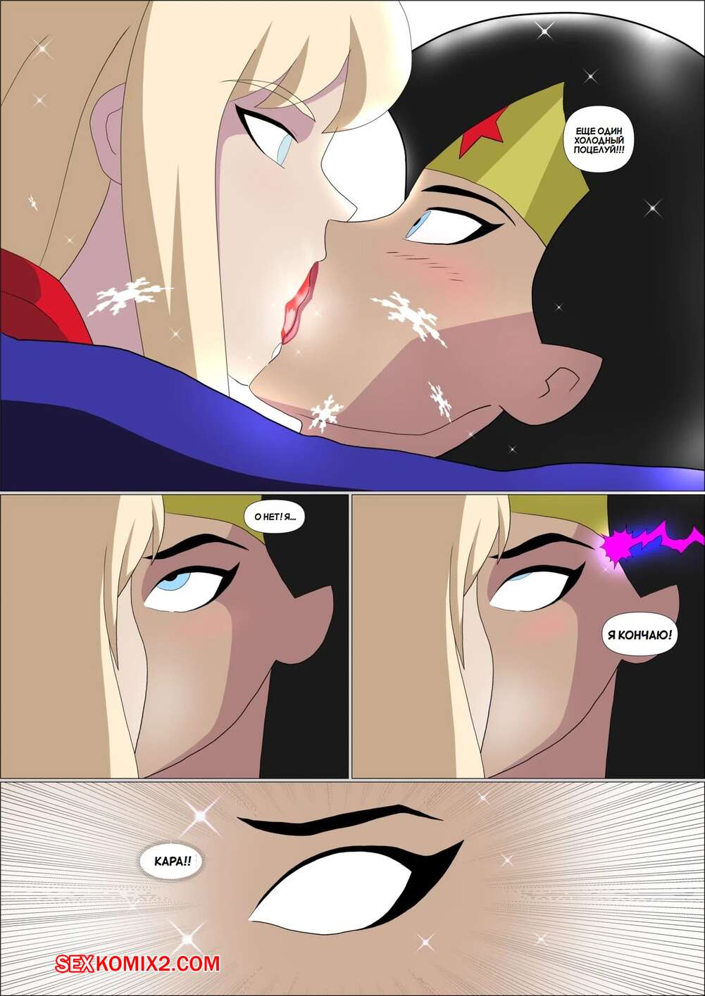 Порно комикс Лига справедливости. Супергерл и Чудо Женщина. Supergirl X Wonder Woman. Zetarok Горячая блондинка Супергерл была очень возбуждена и решила повеселиться с Чудо Женщиной. Она связала брюнеточку с помощью лассо истины, после чего стала ласкать ее пизденку.