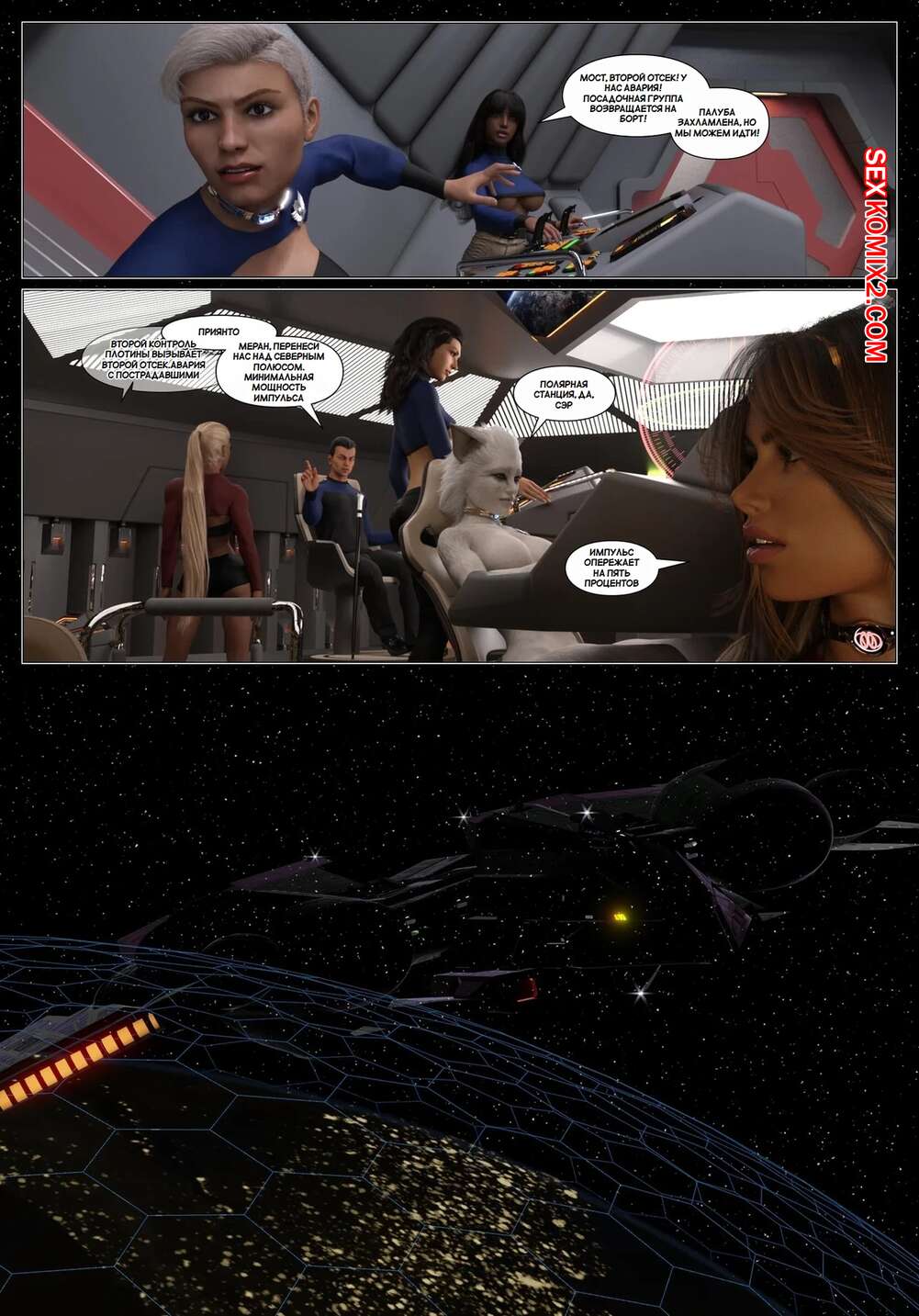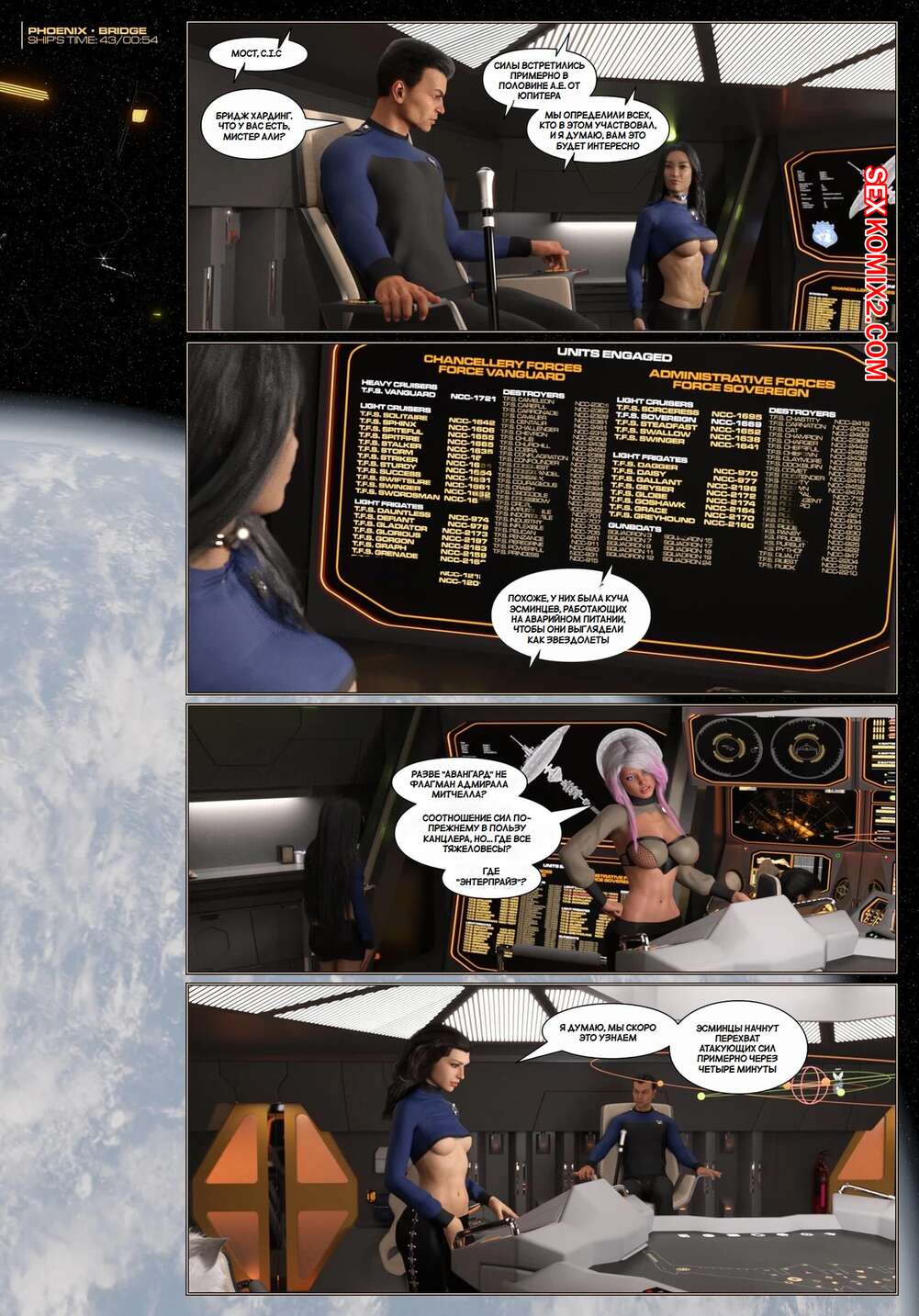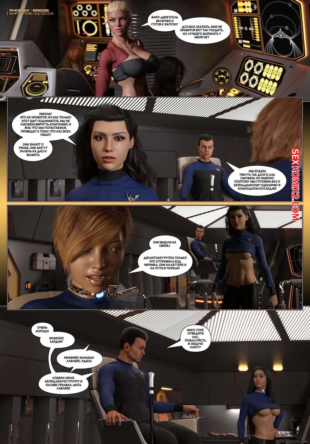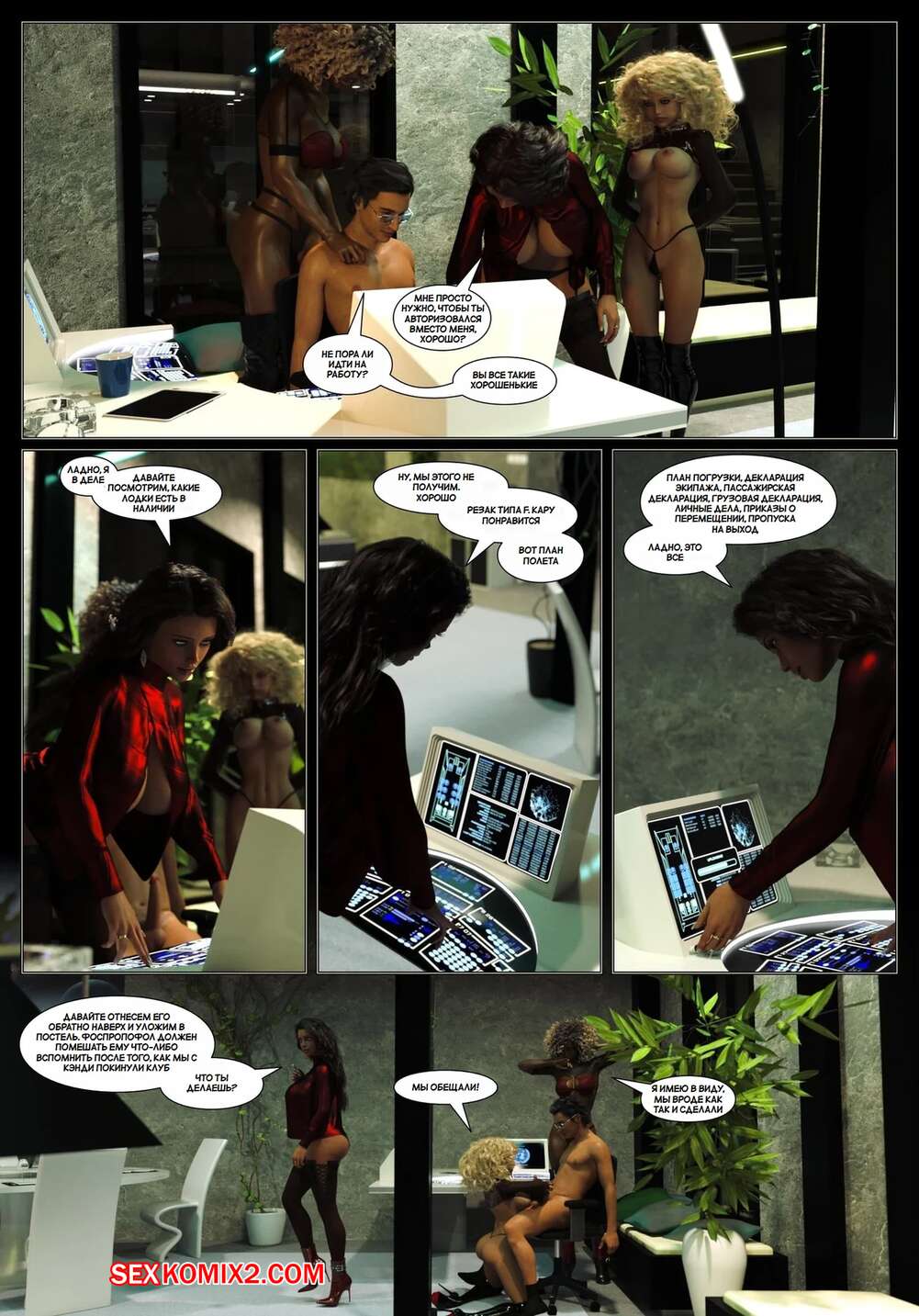 Порно комикс Пираты Угольного Мешка. Часть 27. Pirates of the Coal Sack. DangerousLines. Горячие сисястые красотки были очень возбуждены и решили повеселиться со своим дружком. Они разделись и отсосали большой хуй парня, после чего дали ему себя хорошенько выебать.