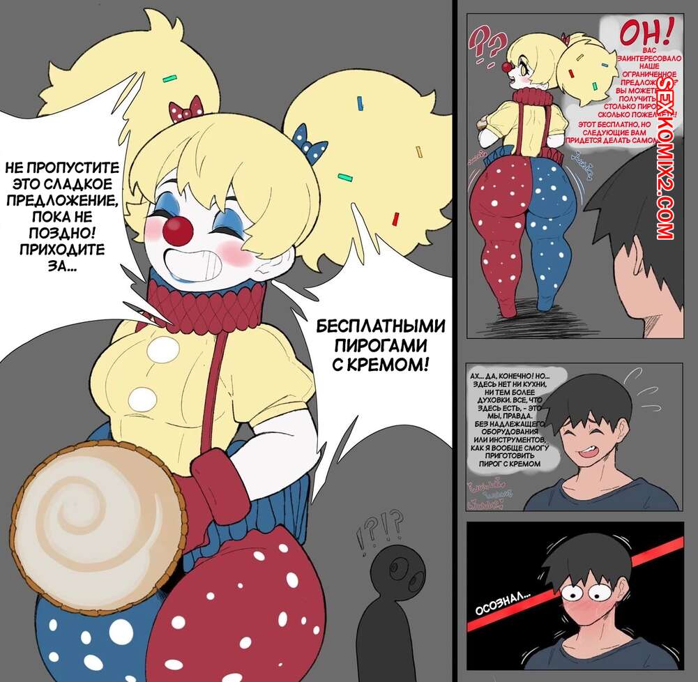 Порно комикс Бесплатные пироги с кремом. Free cream pies.. Горячая блондинка продает пироги с кремом и молодой парень решил сам угостить ее своим пирогом. Он как следует выебал пизденку девушки своим большим хуем, заполнив ее своей спермой.