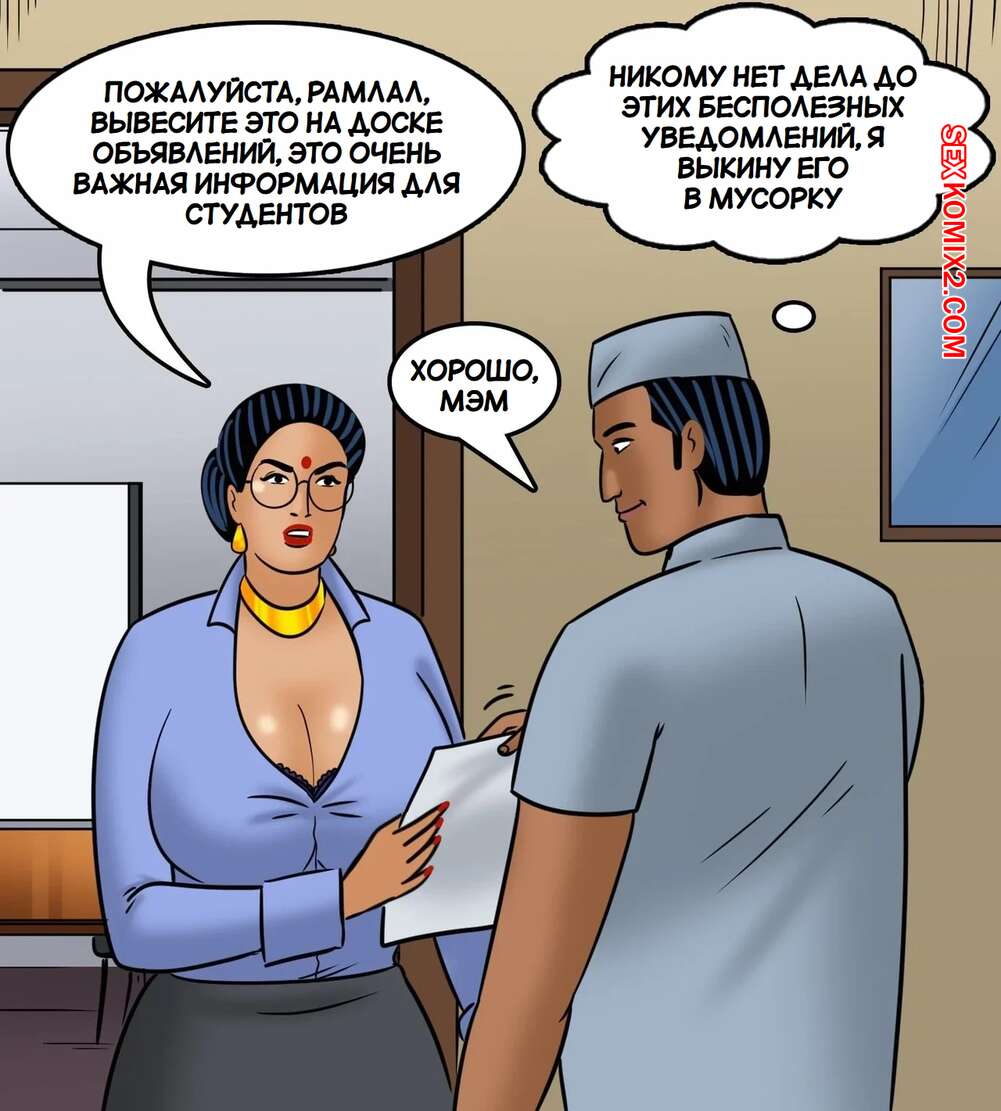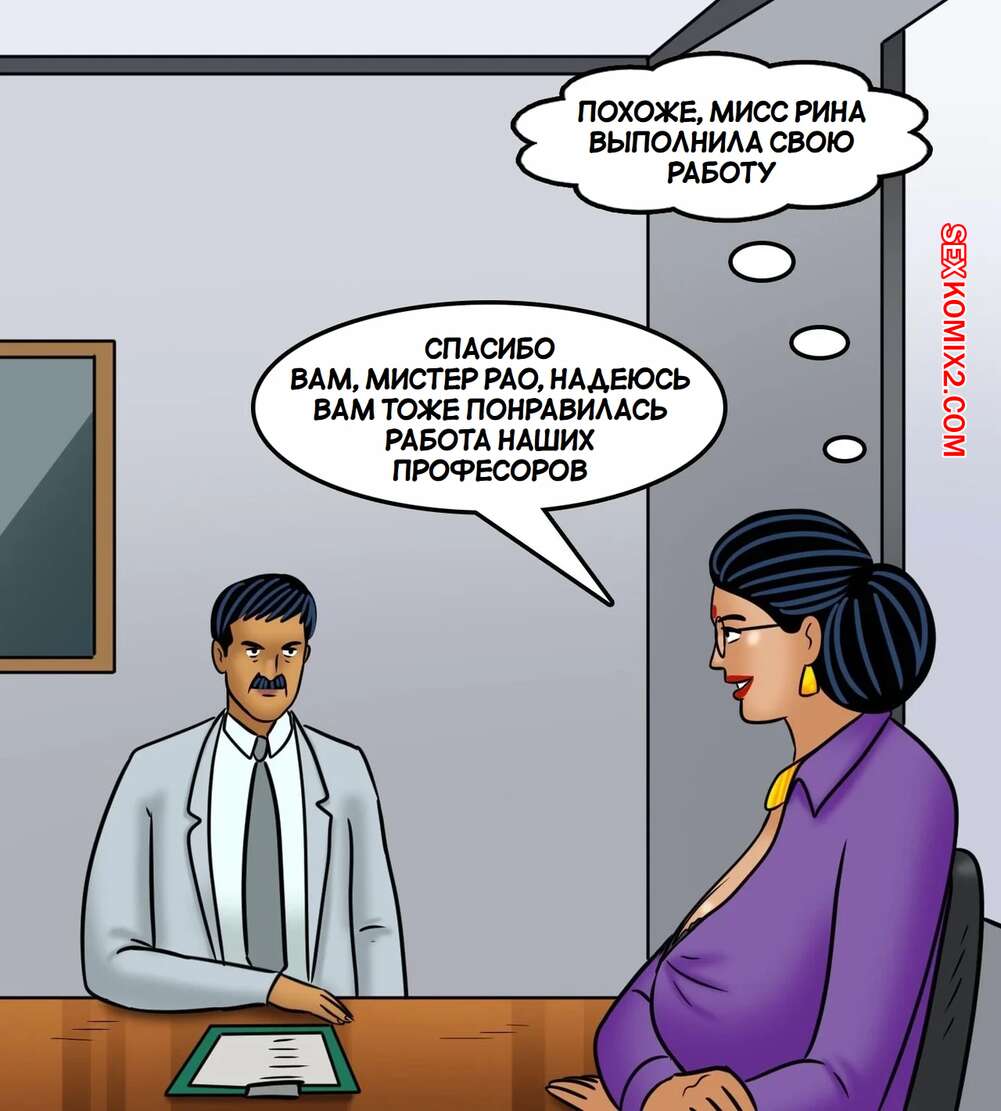 Порно комикс Сны Веламмы. Часть 19. Velamma Dreams. Kirtu Горячая сисястая милфа была очень возбуждена и решила повеселиться со своим коллегой. Она разделась и отсосала большой хуй парня, после чего дала ему себя выебать.