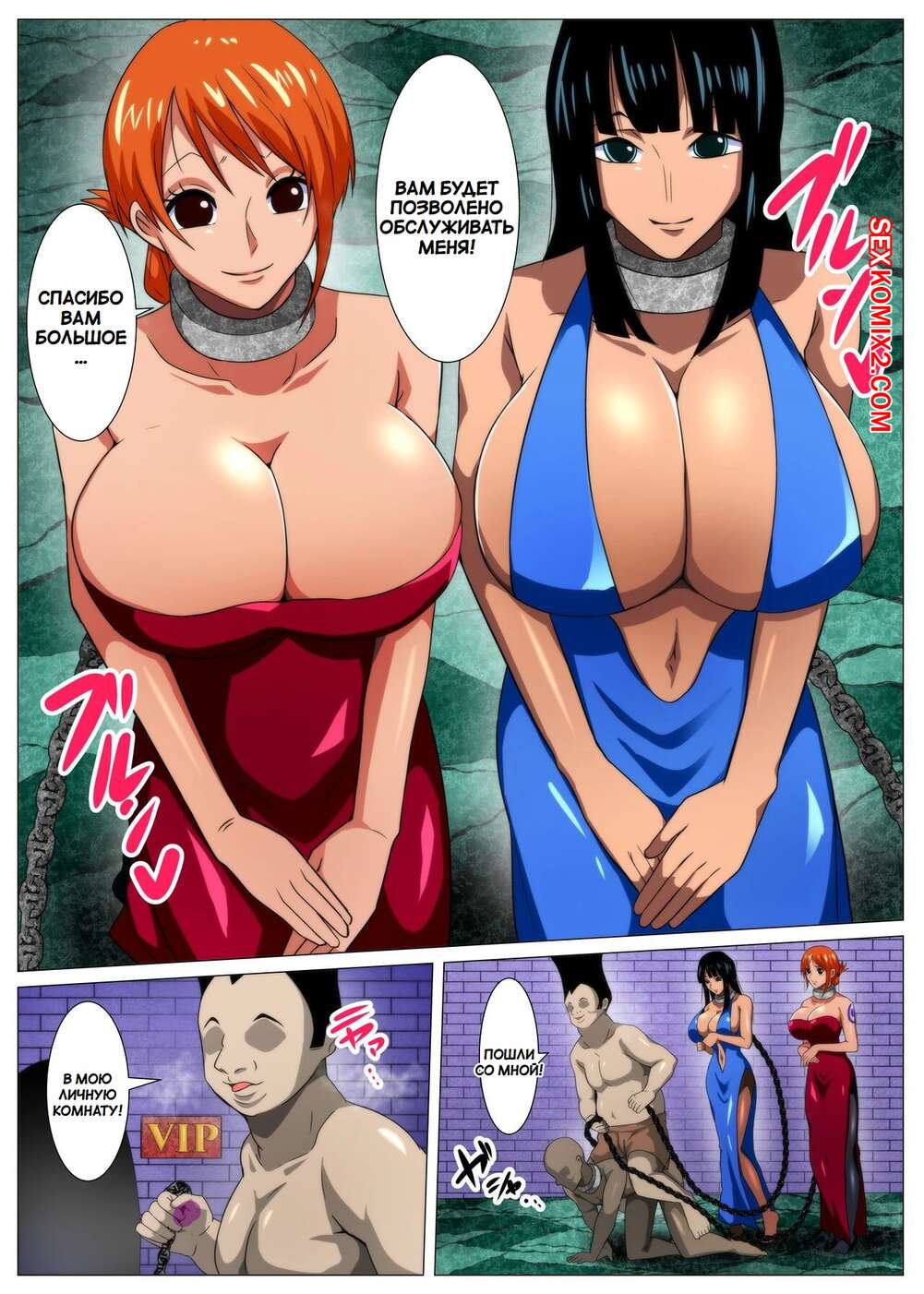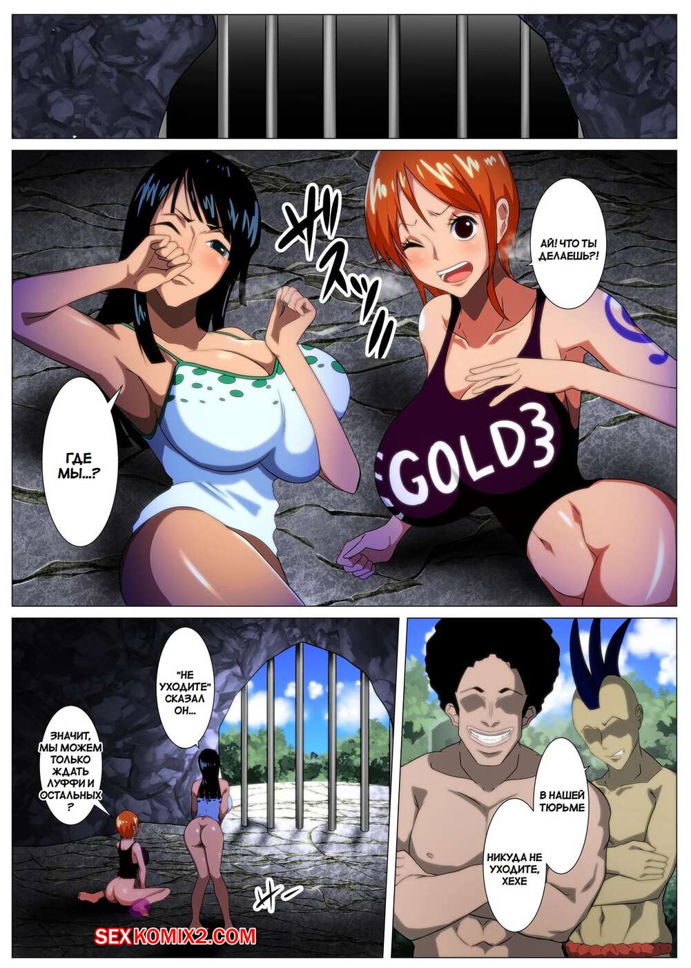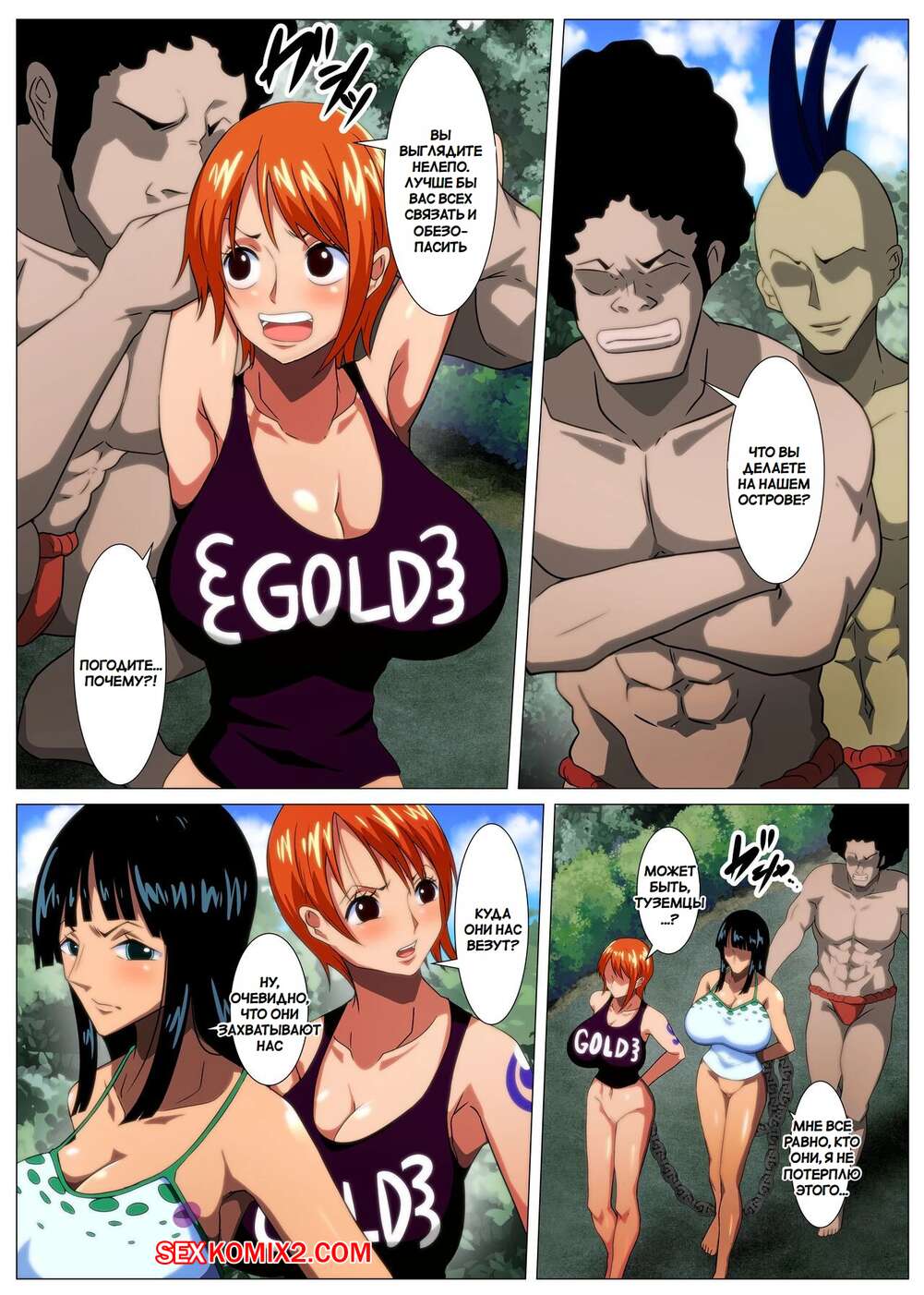 Порно комикс One Piece. Пышные женщины пираты охотятся за сокровищами. Q Doujin. Темнокожие парни схватили сексуальных девушек и превратили их в своих рабынь. Они раздели красоток и дали им отсосать свои большие хуи, после чего хорошенько выебали послушных девушек.