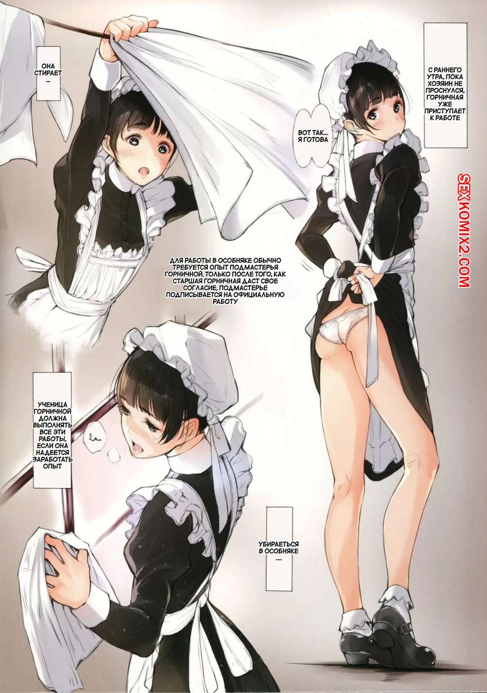 Порно комикс Ежедневно разные дела. Maid Iroiro. Kuragamo.Tukinowagamo Горячие красотки горничные без ума от большого члена своего хозяина. Девушки раздеваются и сосут большой хуй паренька, после чего дают ему себя хорошенько выебать.