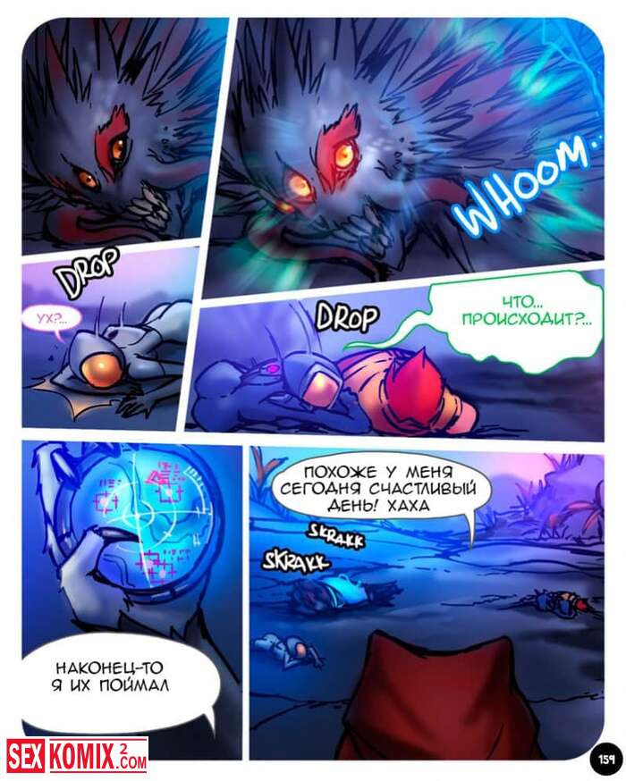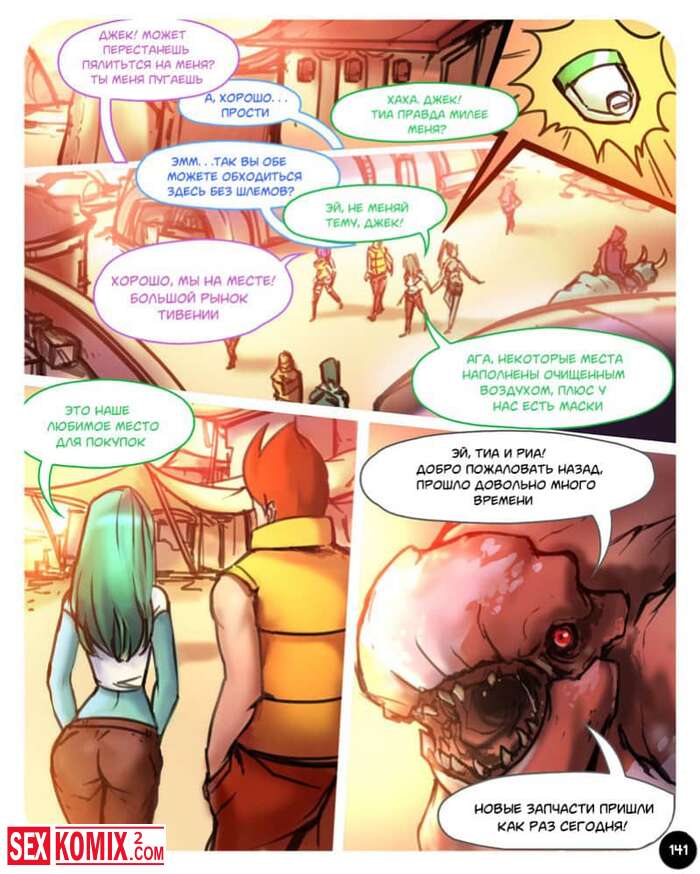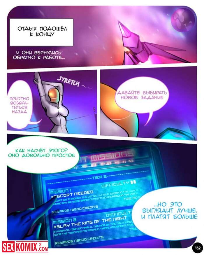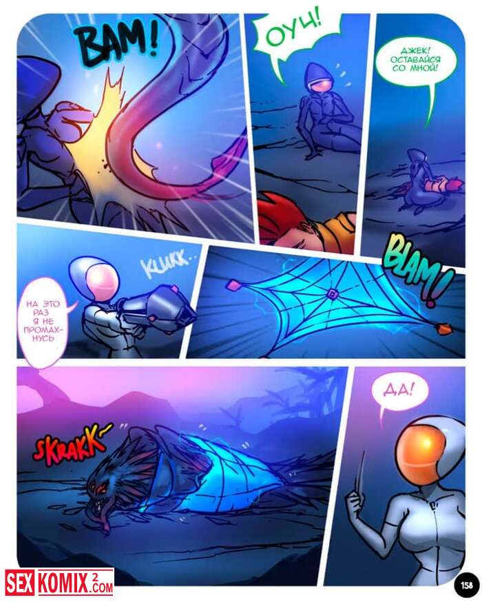 Порно комикс Секспедиция. Части 7 и 8. Sexpedition. Джек и его спутницы, девушки с разных планет, которых он спас. Снова находят новые приключения, он попадают в плен к охотнику за головами, но ему нравится они из девушек и мужчина теряет бдительность.