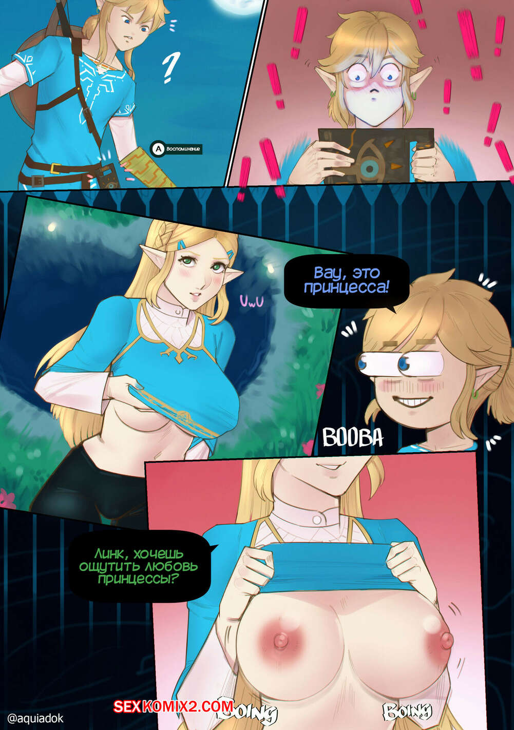 Порно комикс The Legend of Zelda. Сексуальное воспоминание. Sexy Recall. Aquiadok. Во время путешествия у Линка возникло сексуальное воспоминание о принцессе Зельде. Девушка разделась и отсосала большой хуй героя Хайрула, после чего дала ему себя выебать и кончить в нее.