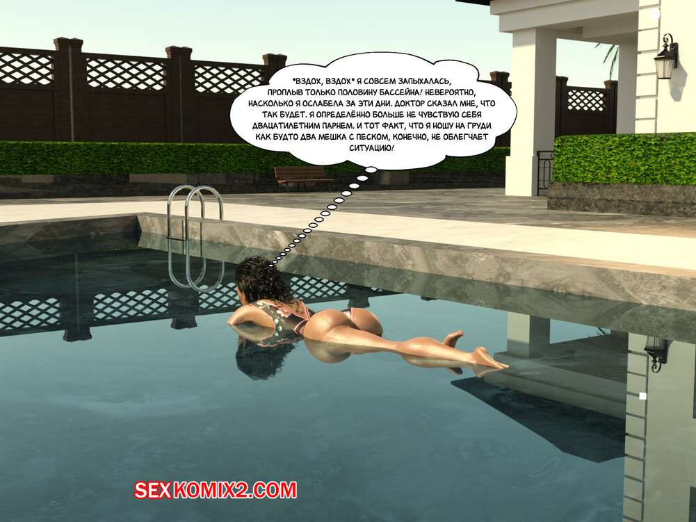 Порно комикс Зеркало Афродиты. Часть 22. Пот, кровь и слёзы. Melissa822 Сисястая брюнетка милфа надела сексуальный купальник и отправилась купаться в бассейне. Там она осталась наедине с молодой девушкой, которая стала задавать милфе откровенные вопросы.
