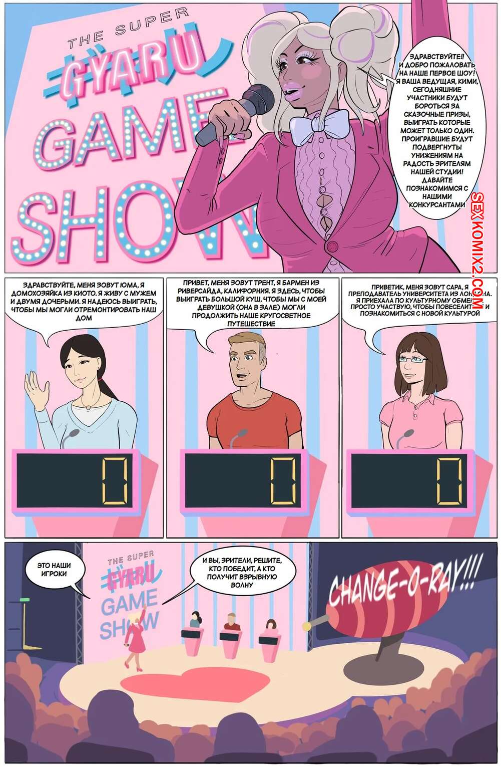 Порно комикс Шоу игру Гяру. Gyaru Game Show. ManaOmega Молодые парни пришли принять участие в необычной игре. В процессе игры с ними стали твориться изменения, в результате чего они превратились в сексуаьных девушек с шикарными телами.
