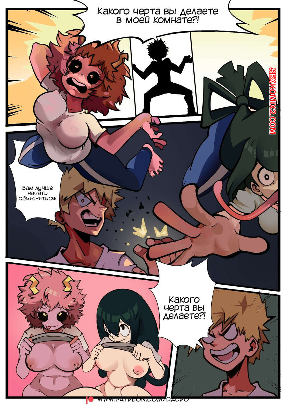 Порно комикс Академия. Любовь это взрыв. Love is an Explotion. Dacro. Две горячие подруги были очень возбуждены ночью, поэтому они отправились в комнату к Бакуго, чтобы повеселиться. Девушки разделись и отсосали хуй парня, после чего дали ему себя хорошенько выебать.