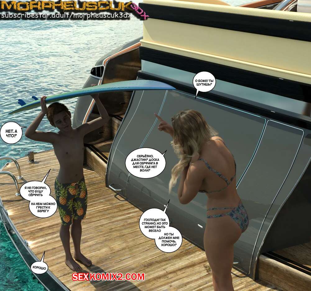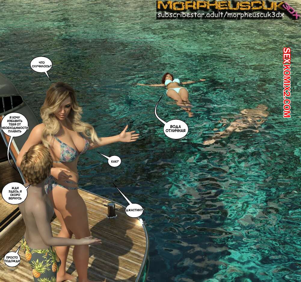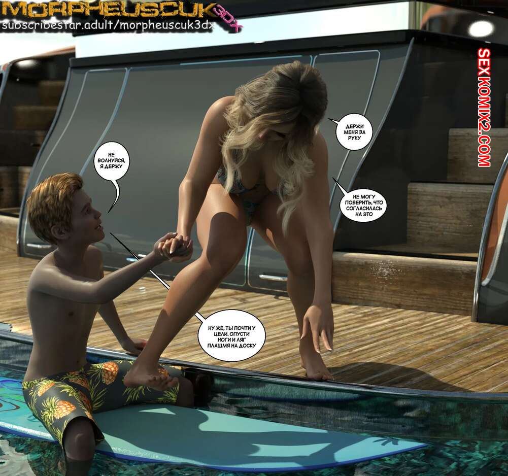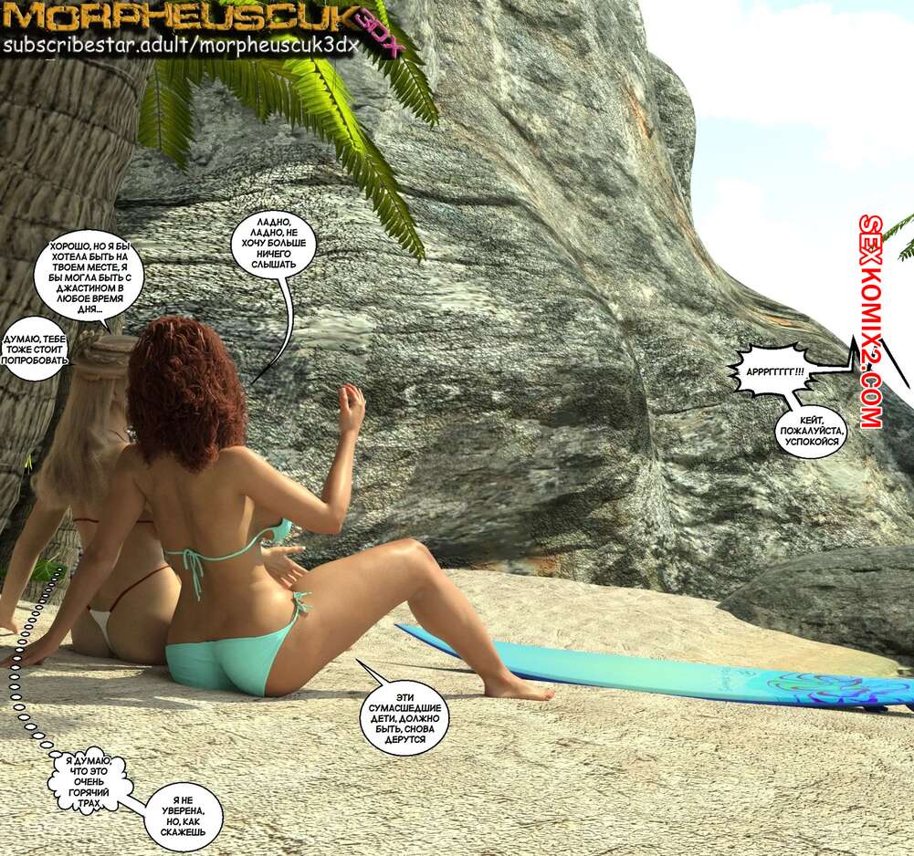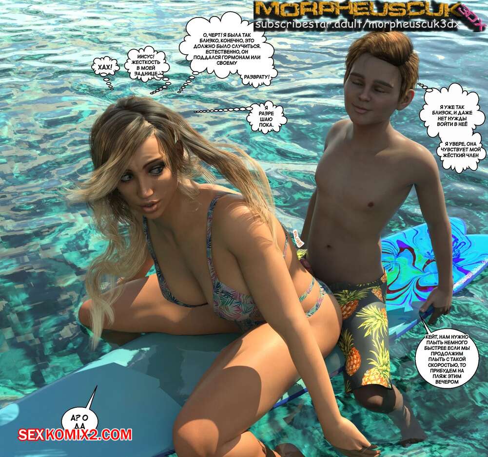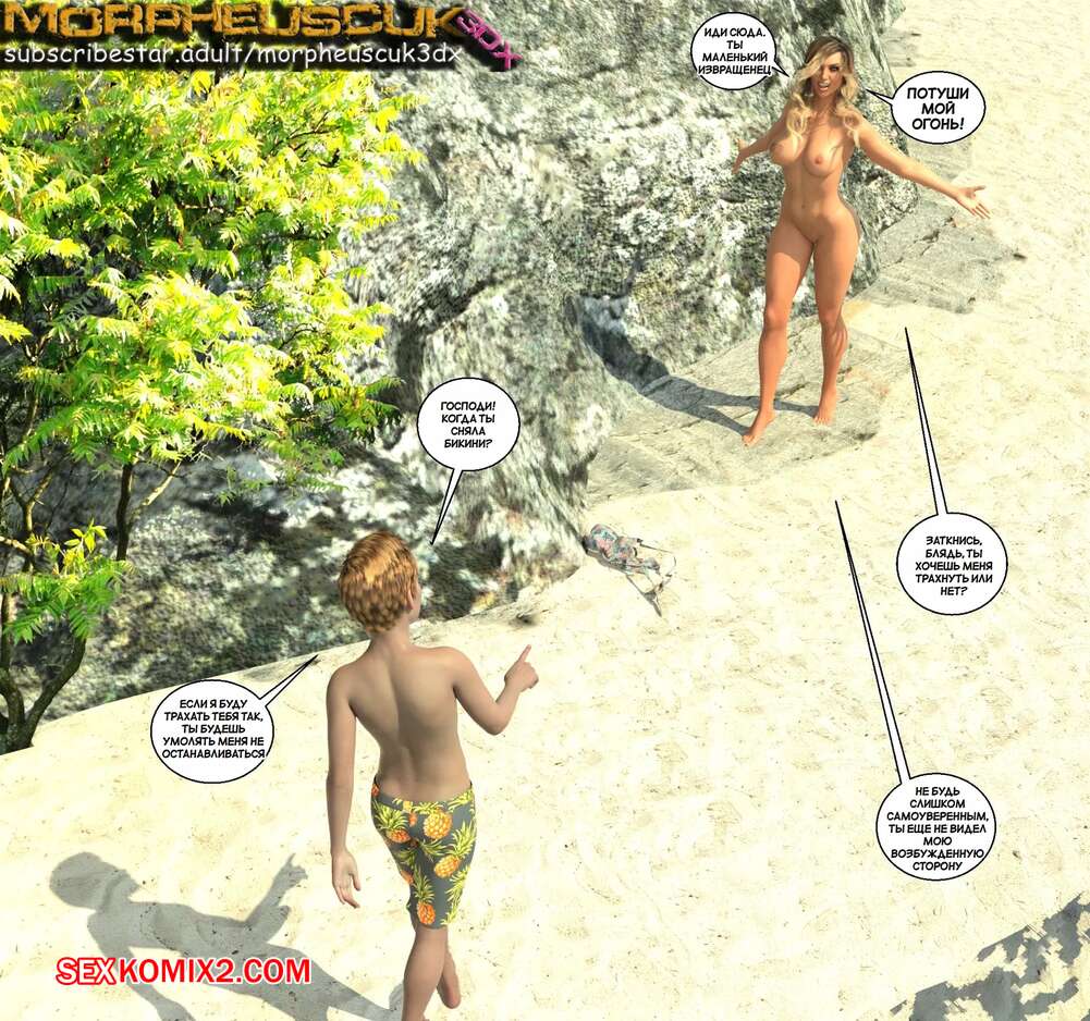 Порно комикс Соседство. Часть 13. Neighborhood. Morpheuscuk Во время отдыха на пляже горячая блондинка милфа была очень возбуждена. Она уединилась с Джастином и дала ему отлизать свою пизденку, после чего парень хорошенько выебал милфу.