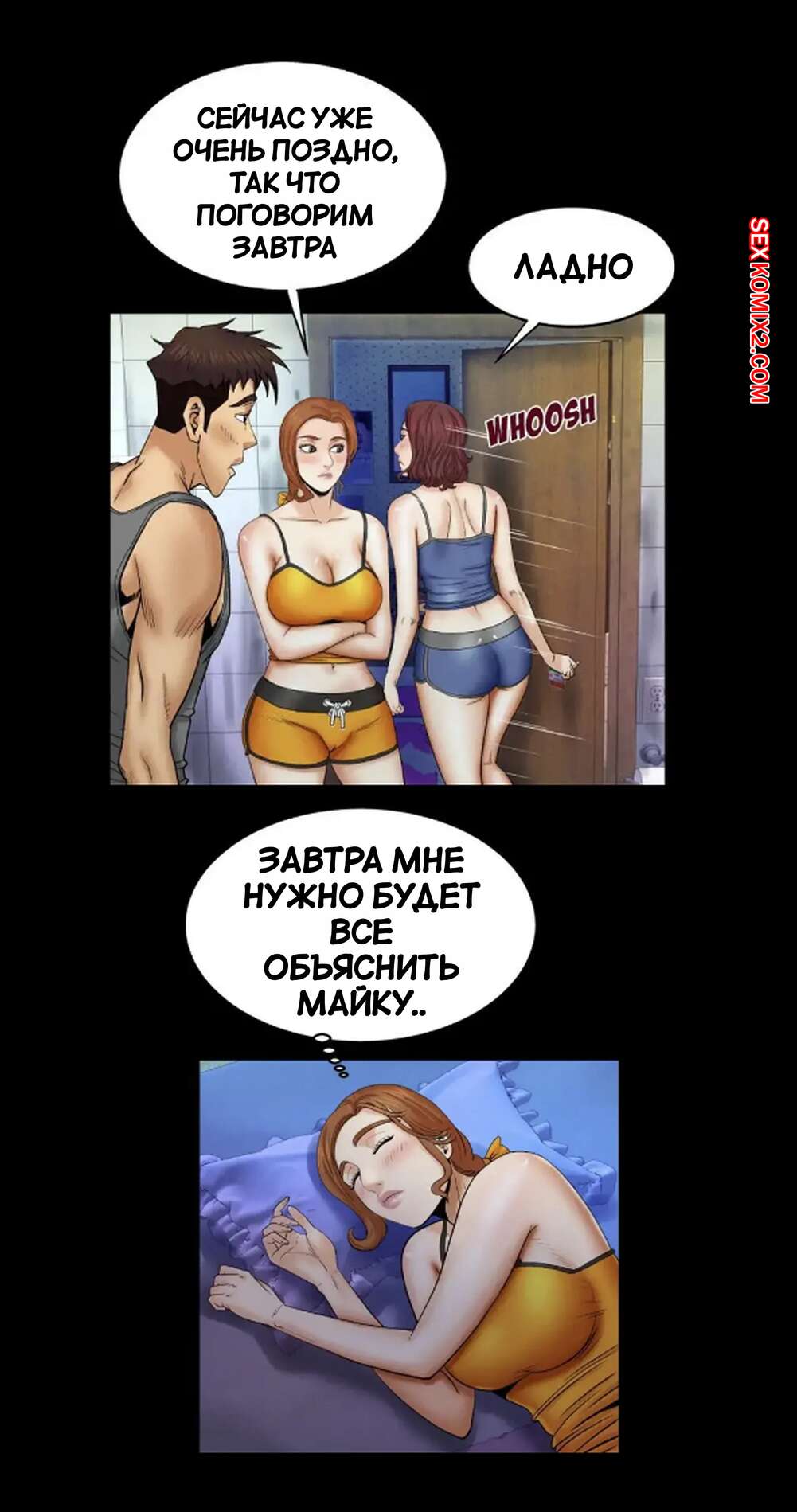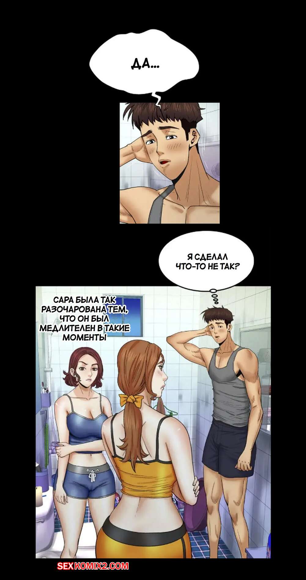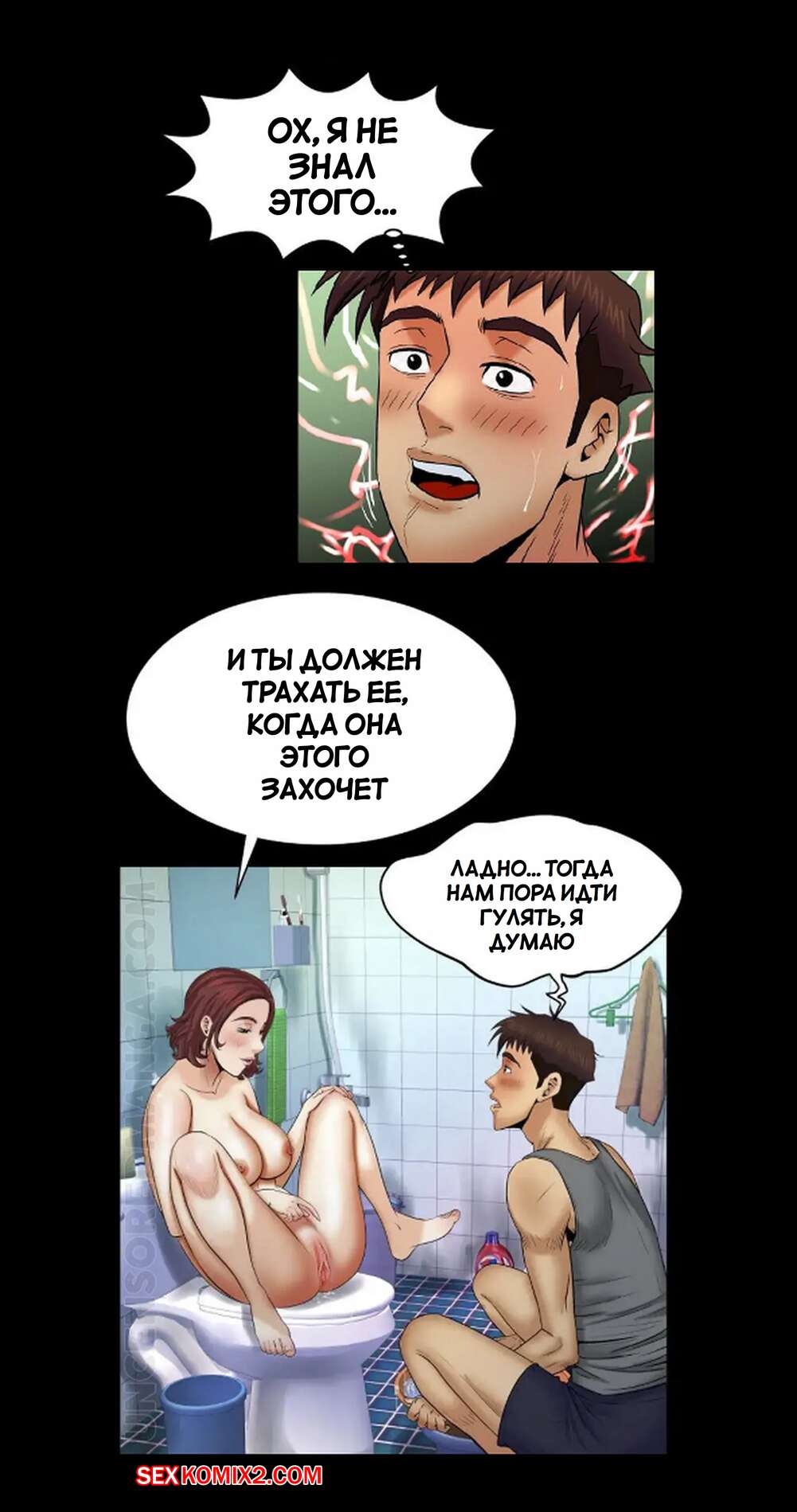 Порно комикс Моя тетя. Без цензуры. Часть 23. My Aunt. Toomics Горячая брюнетка была очень возбуждена ночью и хотела трахаться. Она разделась и разбудила парня, после чего повела его за собой в туалет, чтобы заняться сексом.