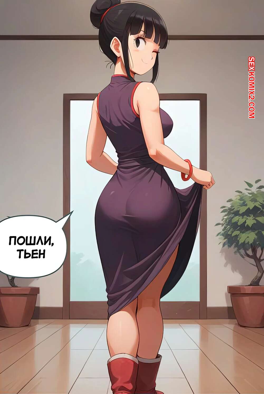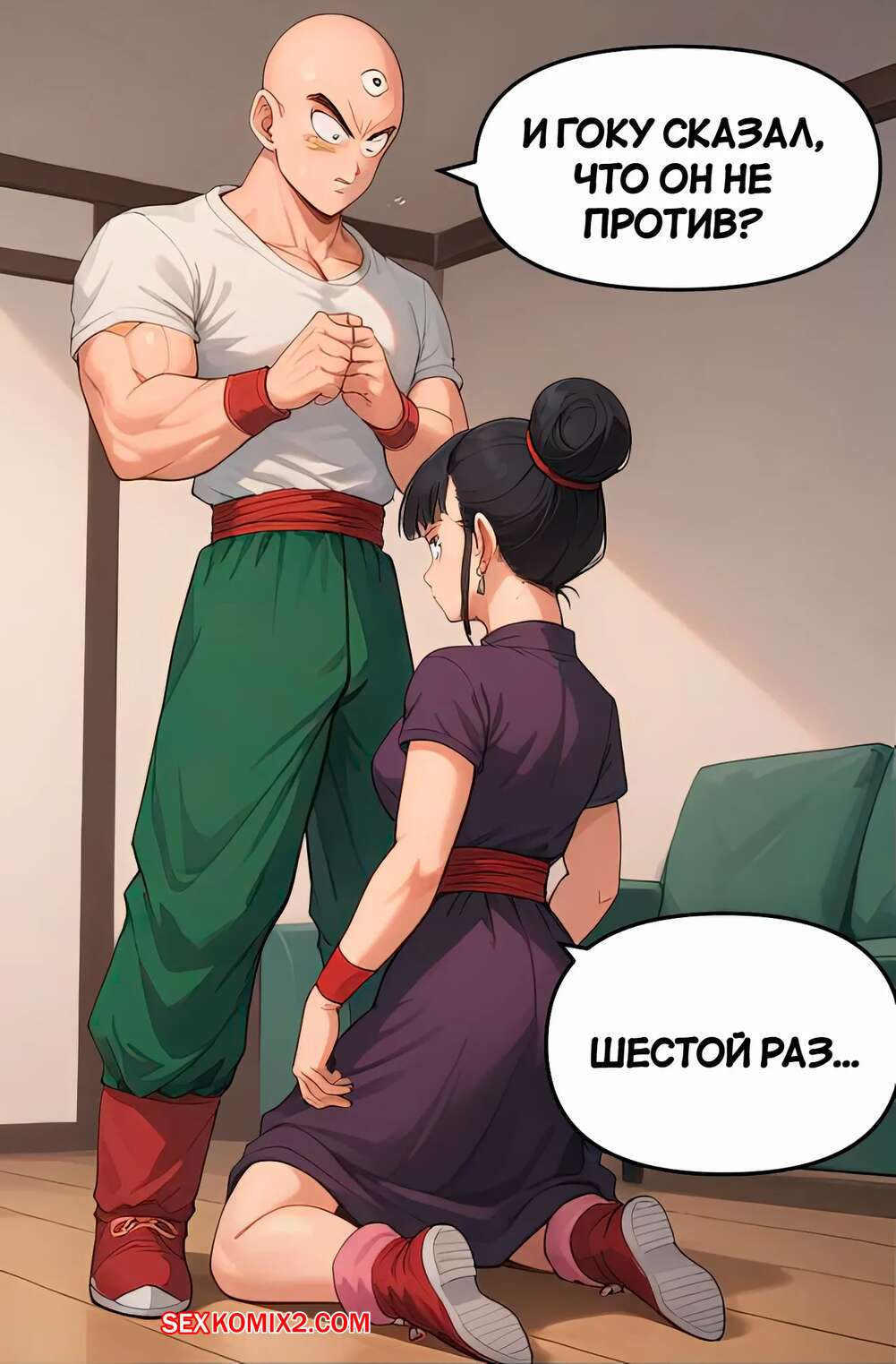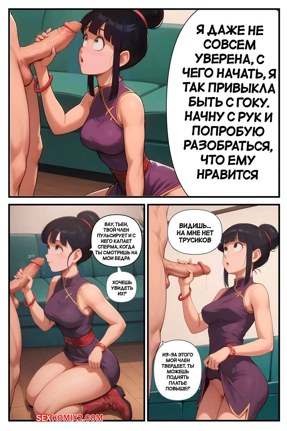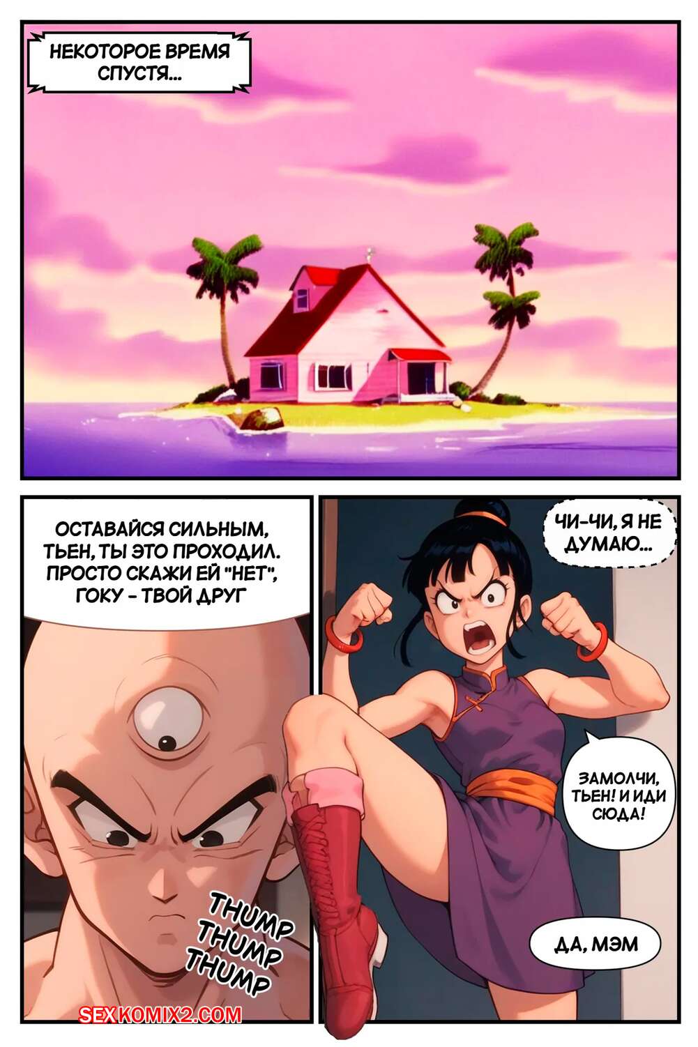 Порно комикс Dragon Ball. Соблазнение Тиен. Tempting Tien. Scarlet Meow. Муж Чичи оставил девушку одну дома с огромной жаждой секса. Красотка решила проучить своего мужа и стала отправляться сексуальные снимки своему дружку, соблазняя его на еблю.