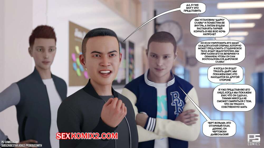 Порно комикс Тимми наносит ответный удар. Часть 13. Timmy Strikes Back. Pegasus Smith Три друга встретились и стали обсуждать план того, как отомстить Тимми за то, что он трахнул им мамок. Парни настроены серьезно, а Тимми тем временем веселится с Беккой, трахая пизденку девушки.