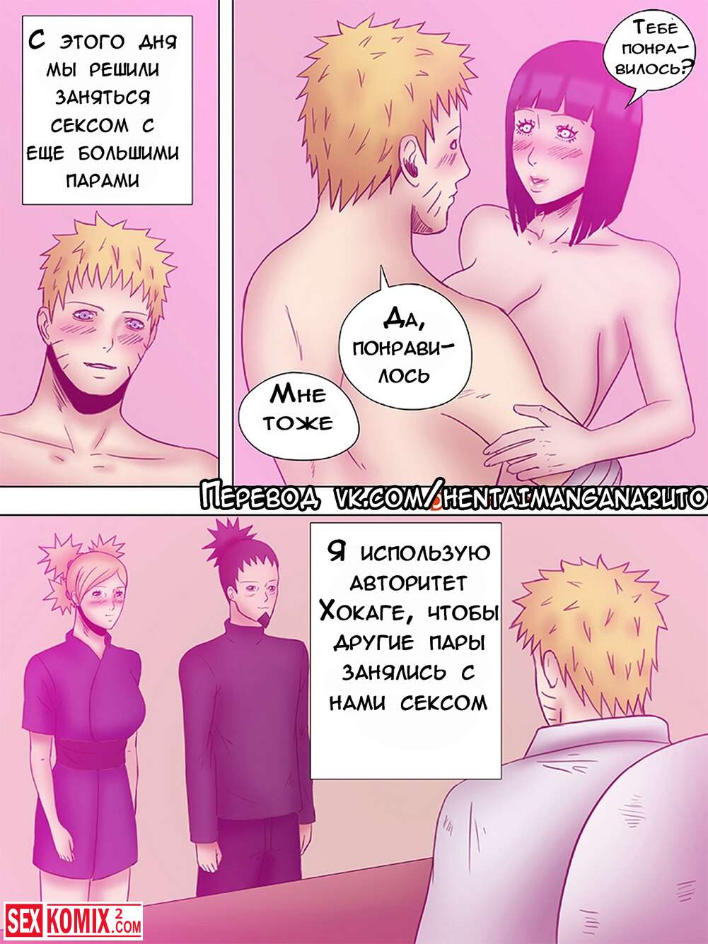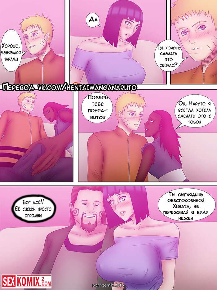 Порно комикс Боруто. Наруто Хокаге. Часть 3. Молодая пара продолжают пробовать что-то новое и в этот раз приглашают другую семейную пару и устраивают свингерскую вечеринку.