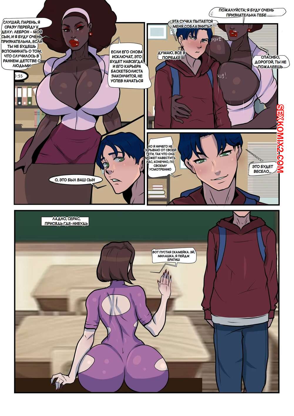 Порно комикс ЛасгаМир. Часть 4. LasgaWorld. Lasga Claven Молодой парень пришел на урок в новую школу, где его встретила сексуальная темнокожая училка. Она стала проявлять к парню свое внимание, соблазняя его, но парень смог сдержаться.