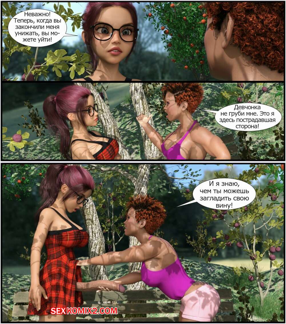 Порно комикс Прогулка по парку. A Walk In The Park. Codemonkey3dx Горячая брюнетка с большим членом гуляла в парке и очень возбудилась. Девушка села на лавочку и стала дрочить свой хуй, после чего к ней присоединилась девушка и дала ей себя выебать.