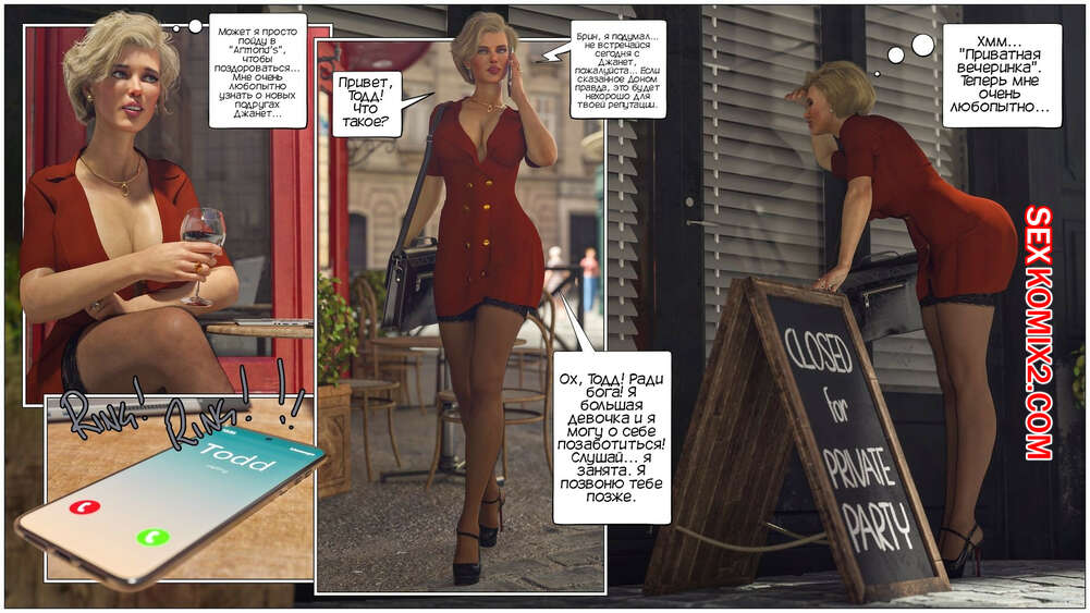 Порно комикс Дом мадам Маделон. Часть 3. The House of Madam Madelon. Tab109 Лана и Джанет собирались отправиться по магазинам вместе с мадам Маделон, но сперва им нужно провести встречу с двумя кадетами. Парни пришли, чтобы наконец лишиться девственности, и две подруги шлюшки готовы им помочь.