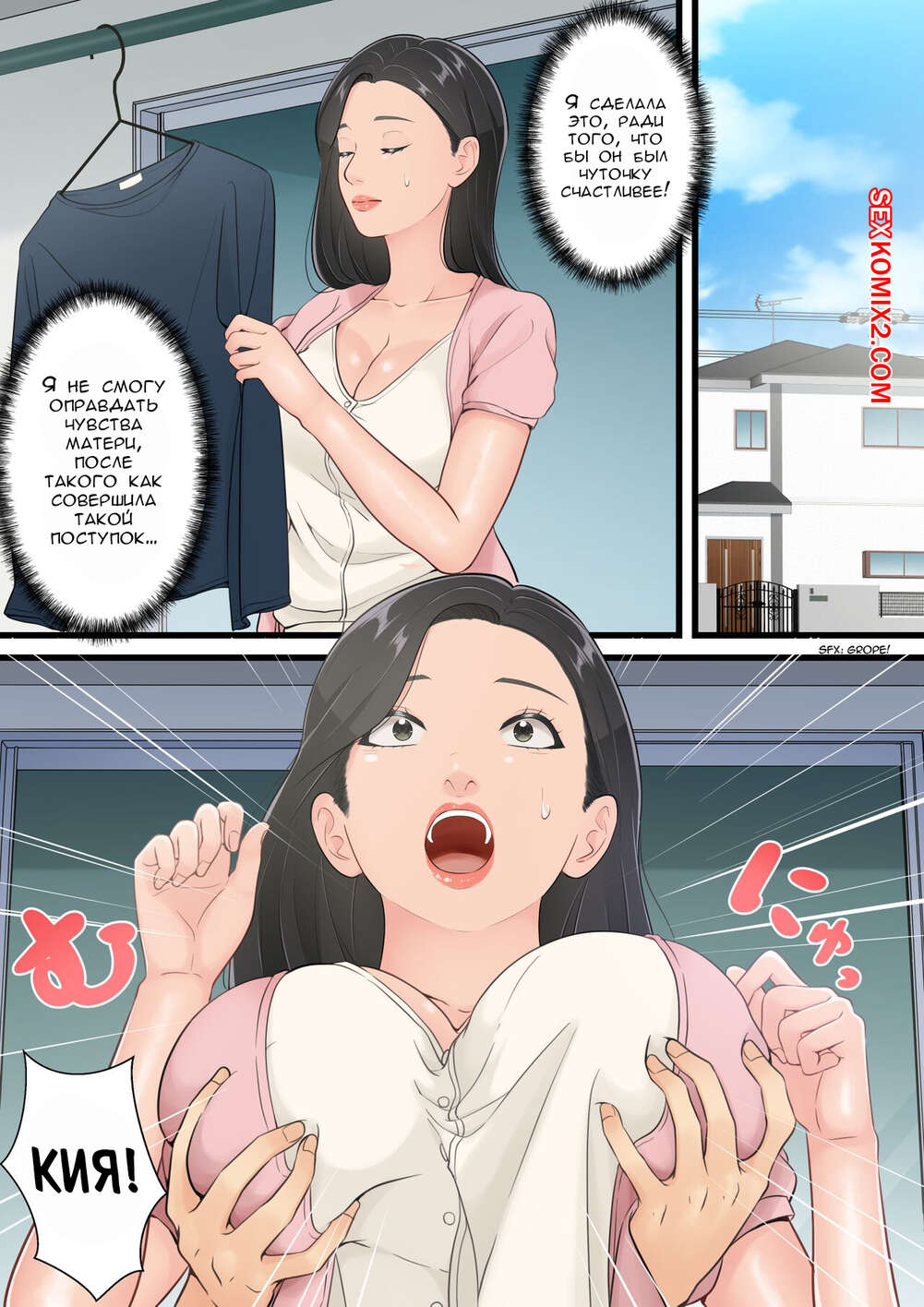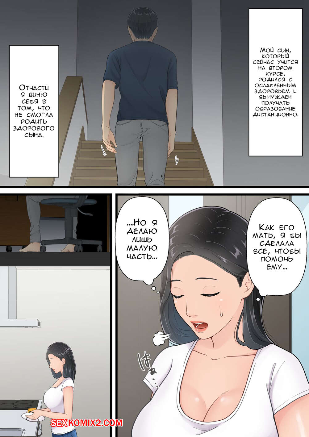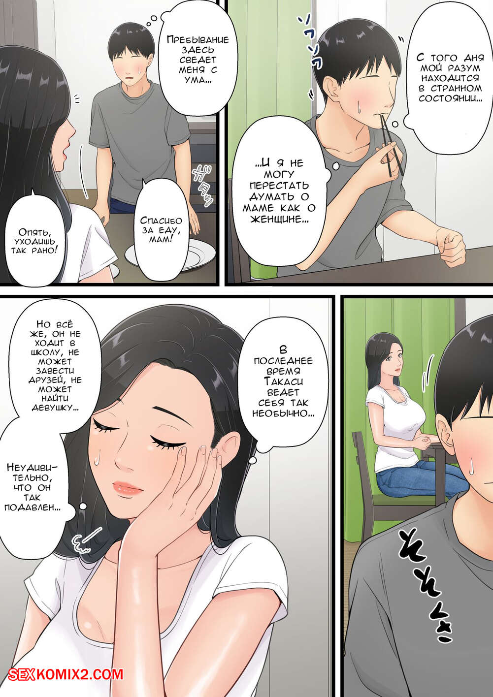 Порно комикс Когда хорошая мама поддается члену своего сына. Yuriko Club Горячая брюнетка милфа была очень возбуждена и хотела трахаться. Девушка отпраивилась в комнату к своему сыну и стала сосать его большой хуй, после чего дала парню себя выебать.