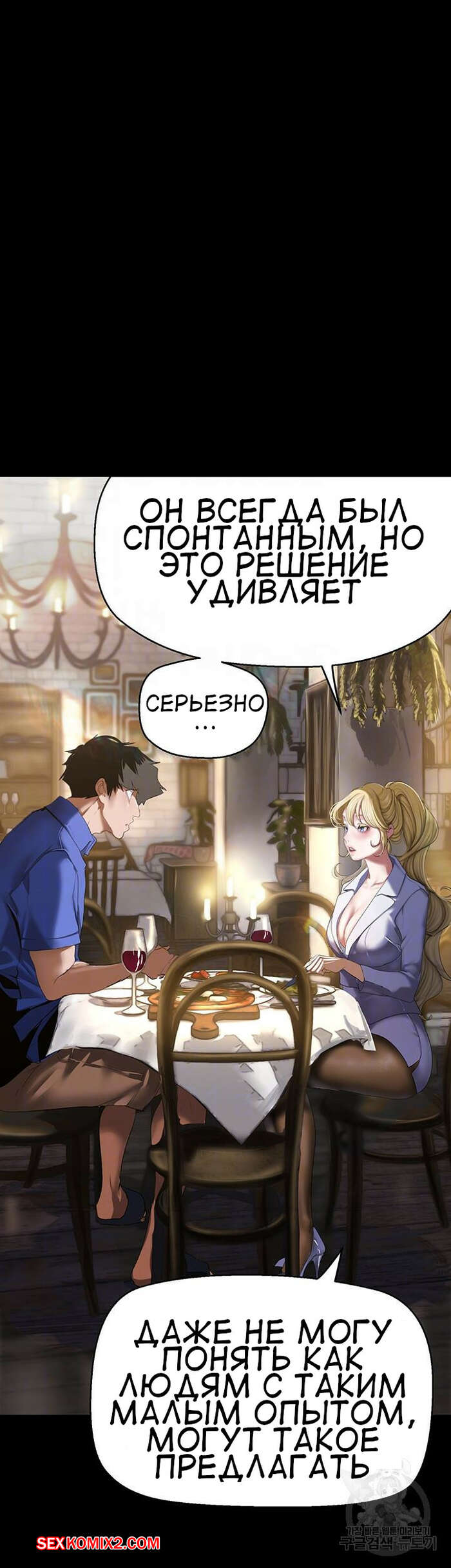 Порно комикс Прекрасный Новый Мир. Часть 203. Beautiful New World Горячая сисястая блондинка отправилась с парнем в ресторан, где стала соблазнять его и ласкать хуй парня своими ножками. Девушка желала уединиться с парнем и поебаться.