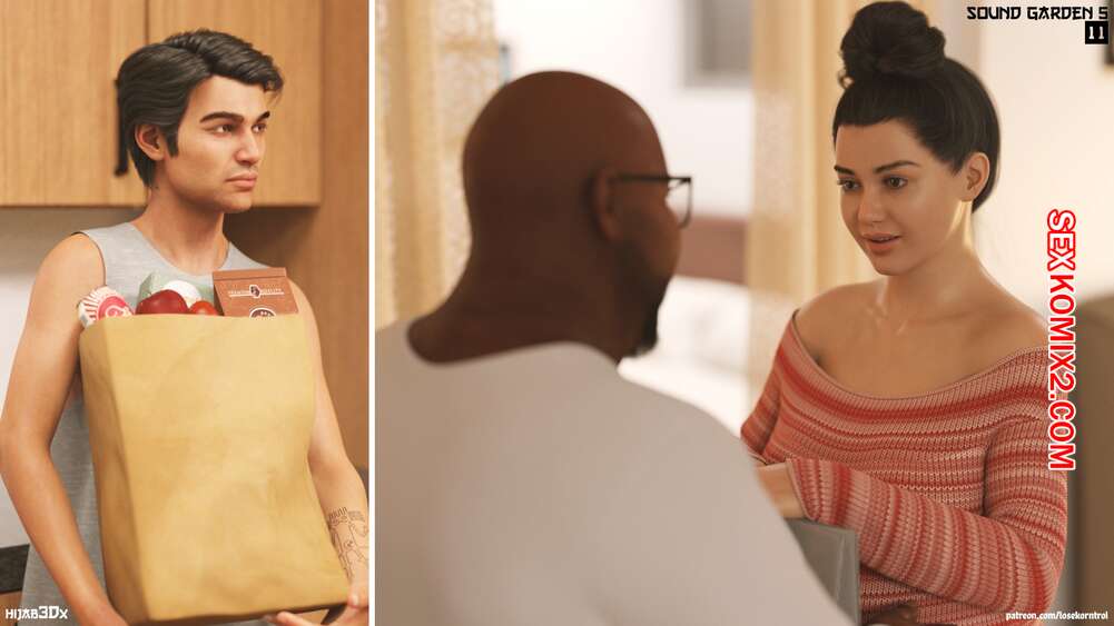 Порно комикс Звуковой сад. Часть 5. Sound garden. Losekorntrol Темнокожий парень пришел домой к беременной милфе. Пока ее муж был занят готовкой на кухне, красотка отсосала большой хуй гостя, после чего дала ему себя выебать.