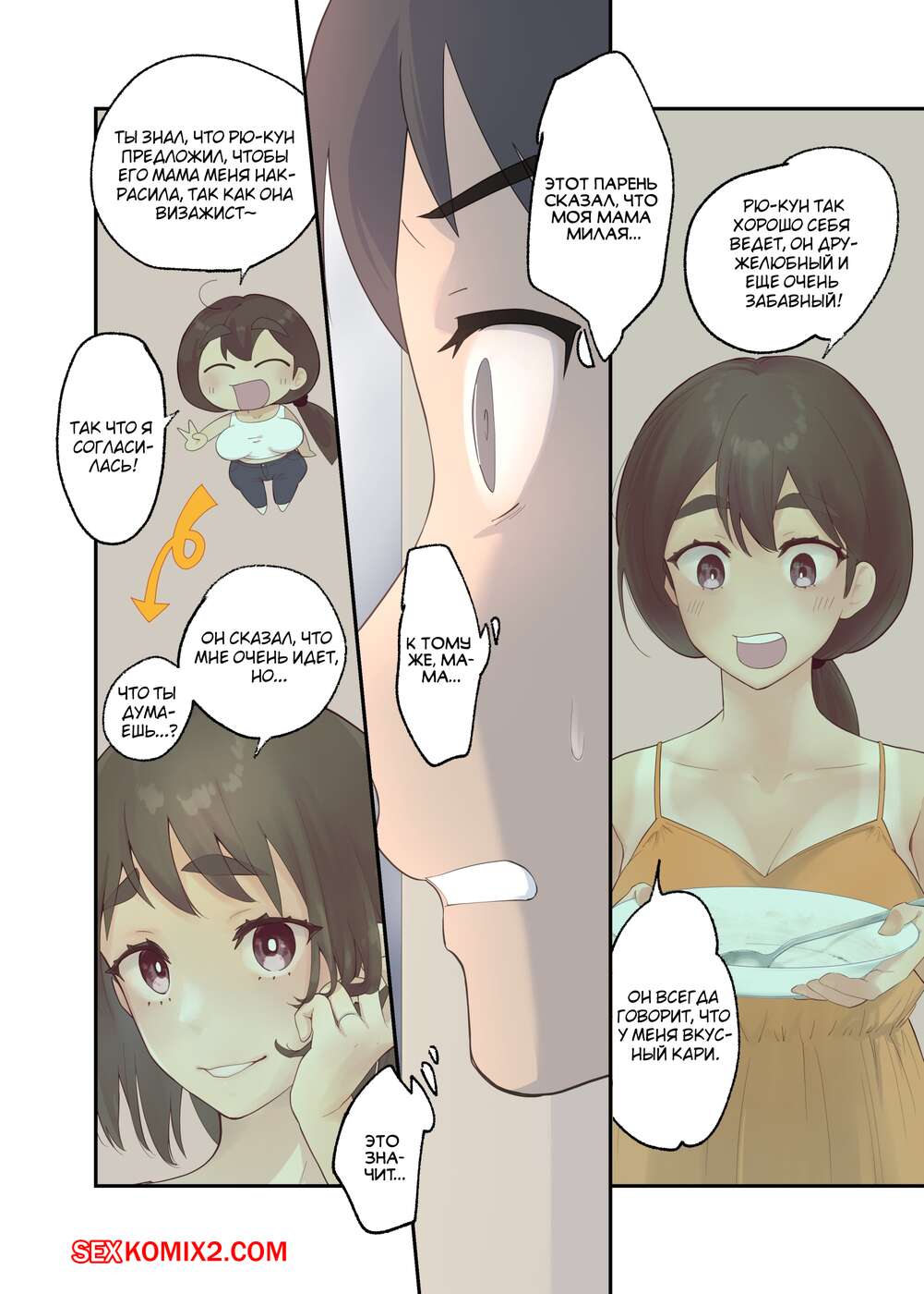 Порно комикс Tomo Chin ni Ochita Haha to Sore ni Mezameru Ore. Karashina En Горячая брюнетка милфа осталась дома наедине со своим сыном и решила с ним повеселиться. Красотка разделась и стала сосать большой хуй парня, после чего дала ему себя выебать.