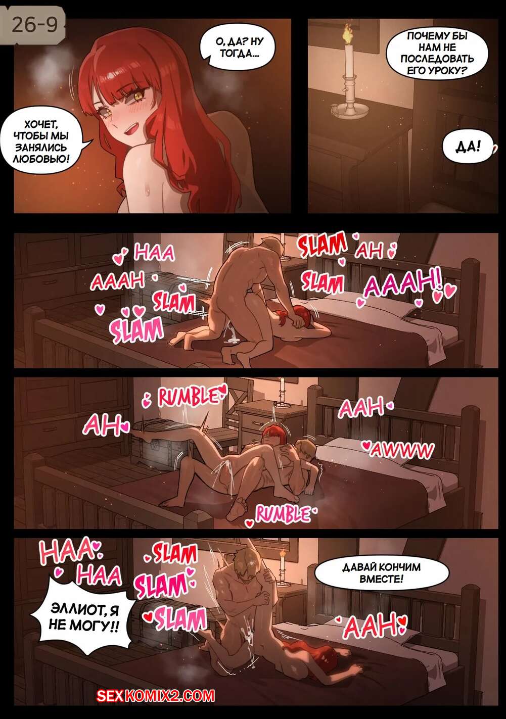 Порно комикс Фантазия 23 34. Fantasy 23 34. 6no1 Рыжая красотка была очень возбуждена и решила повеселиться со своим дружком. Девушка разделась и возбудила парня своим шикарным телом, после чего дала ему выебать свою пизденку и кончить в нее.