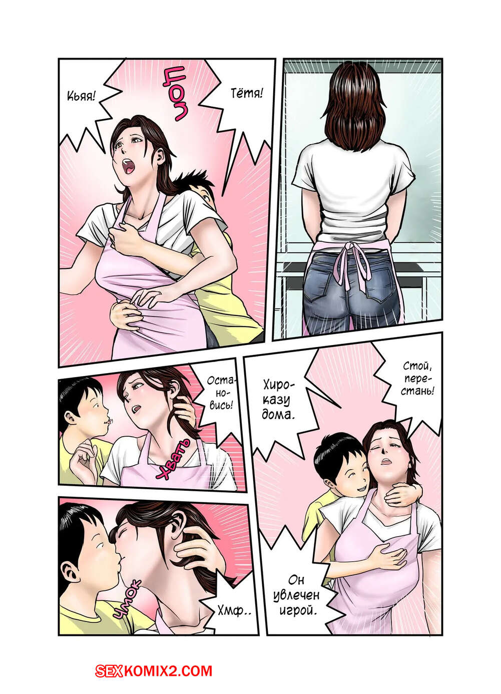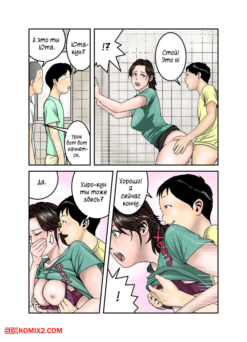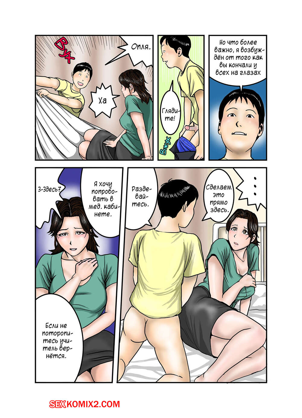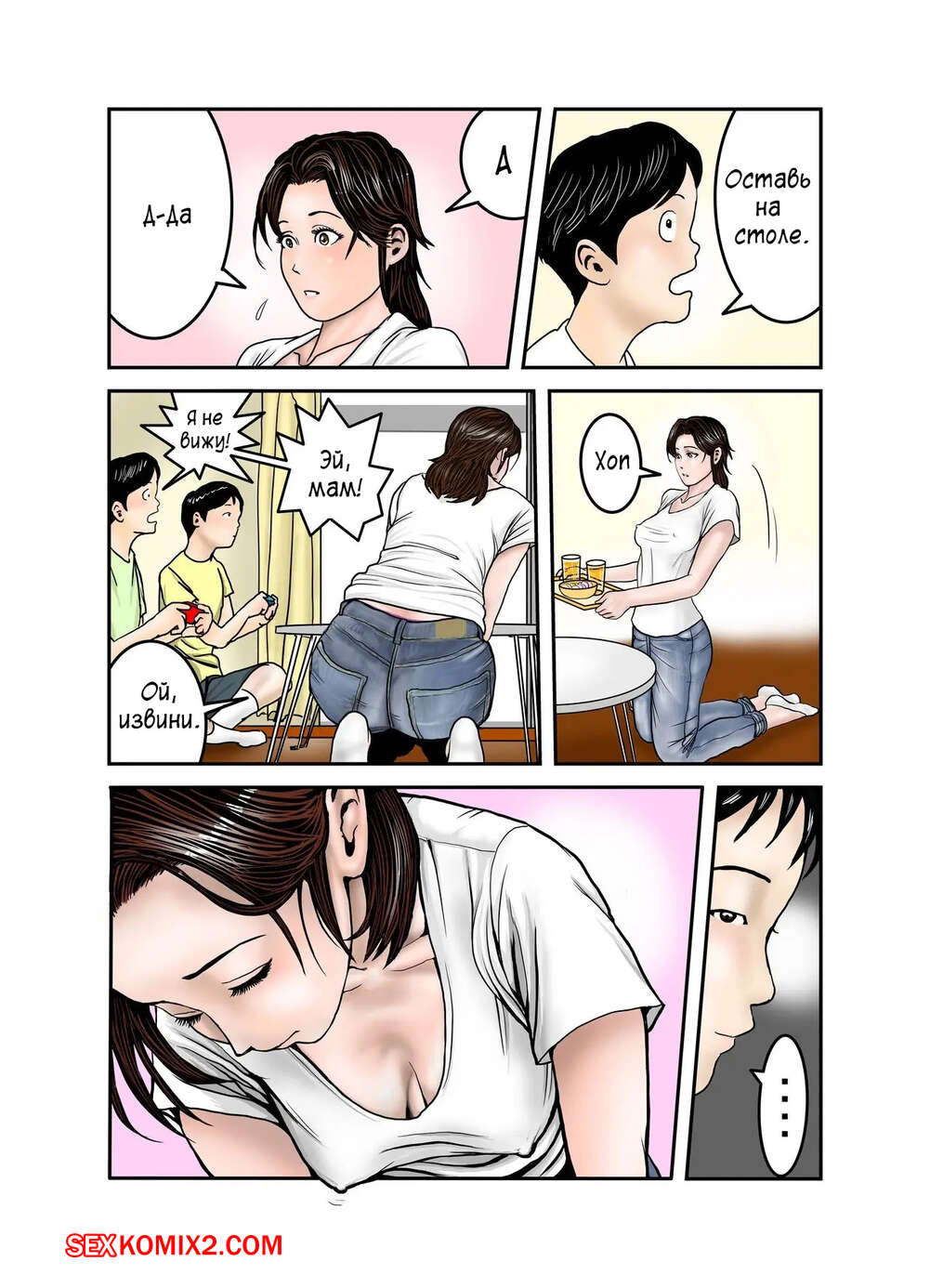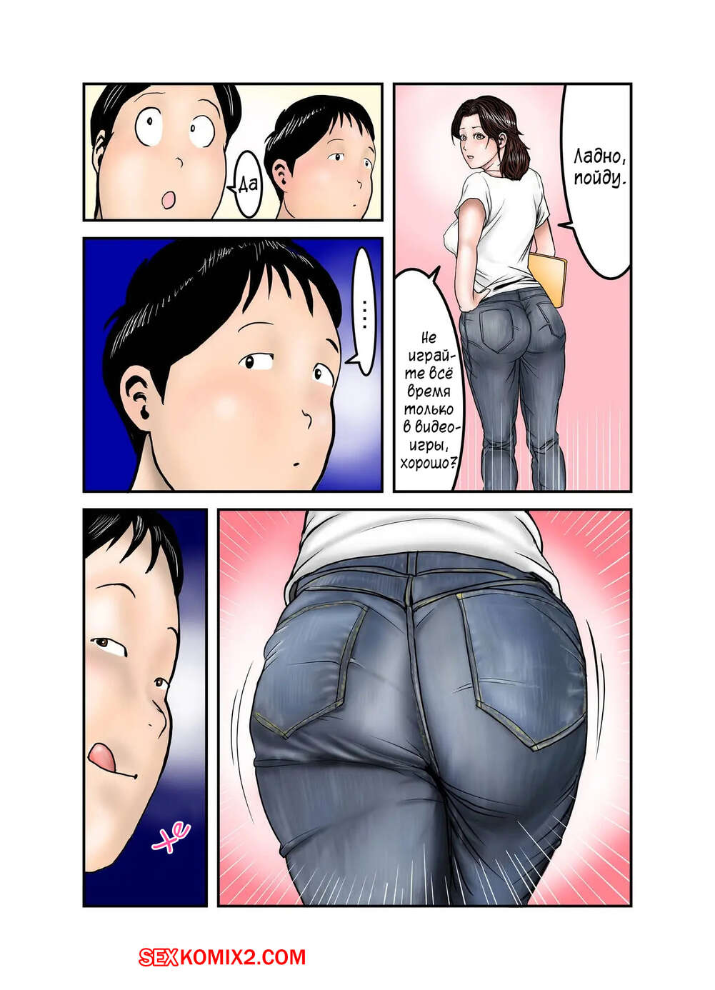 Порно комикс Мама Хиро куна моя секс рабыня. Часть 2. Exit Up Молодой парнишка продолжает пользоваться тем, что знает сокровенную тайну мамки своего друга. Красотка раздевается и сосет большой хуй парня, после чего он ее хорошенько трахает.